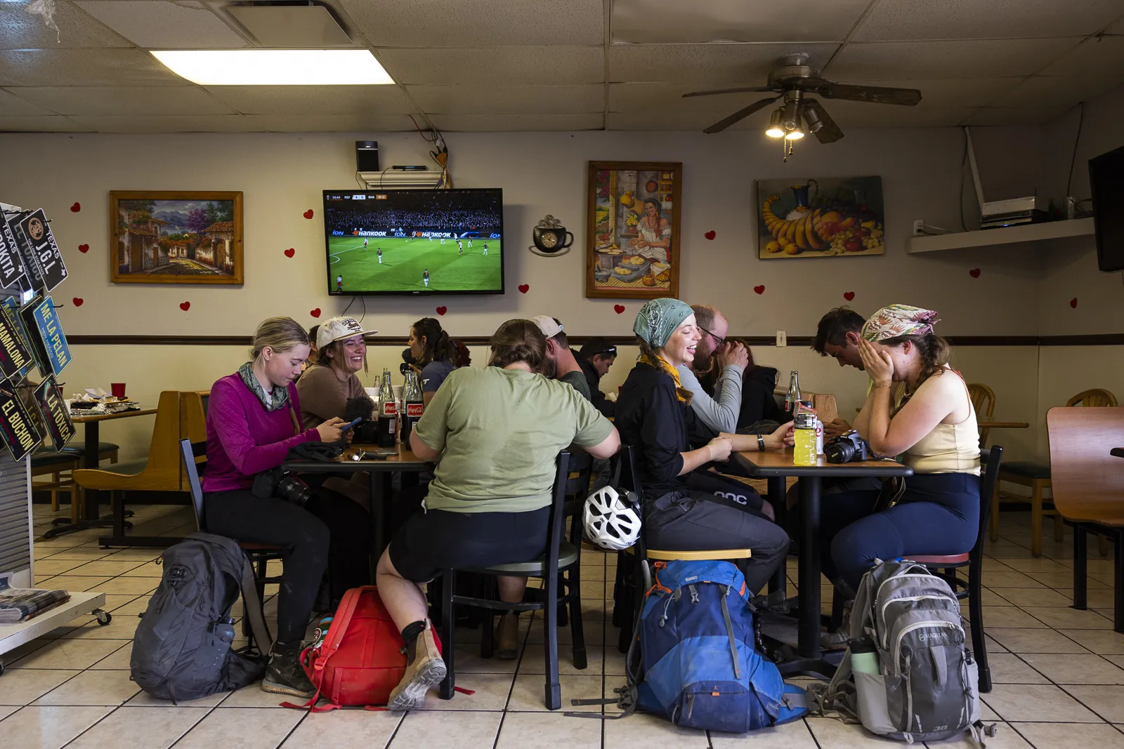Students enjoy lunch off the trail during a bikepacking trip for the Texas Tech University Adventure Media class in Vinton, Texas.