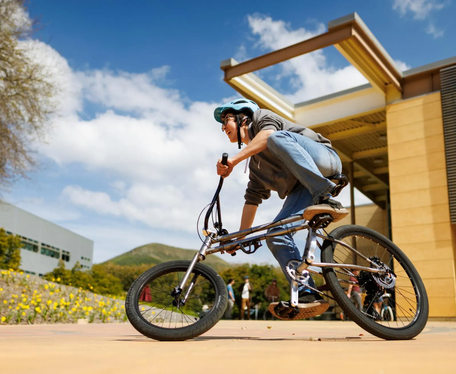 Engineering students in the Single Track Vehicle Design class take part in a bike parade of student project bikes.