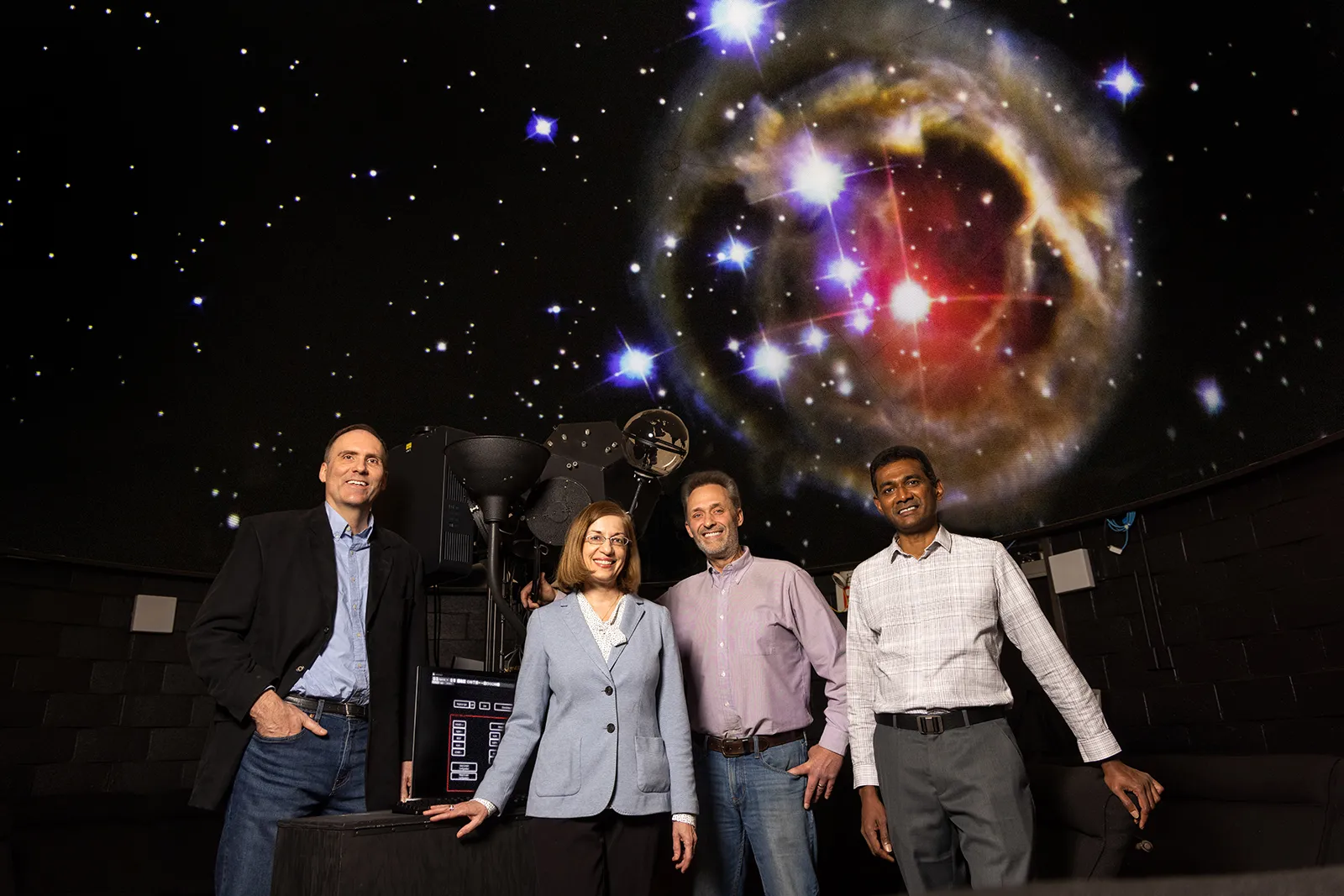 After many years of darkness, the university planetarium has opened its doors. With departmental funding and a financial award from the provost, professors from physics and earth science collaborated to restore equipment and purchase a new projector for the planetarium. The hope is to bring students across interdisciplinary lines to nourish curiosity and build awareness around the university’s work in astronomy and astrophysics.
