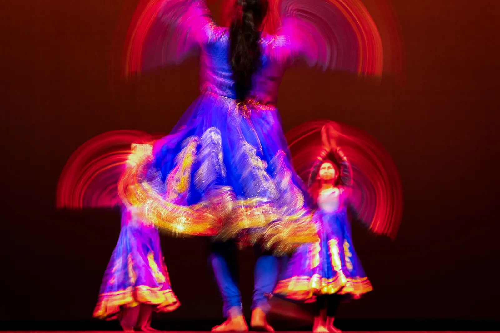 Students with the student club Indian Student Association take the stage during rehearsal at the Center for the Arts in February 2023.