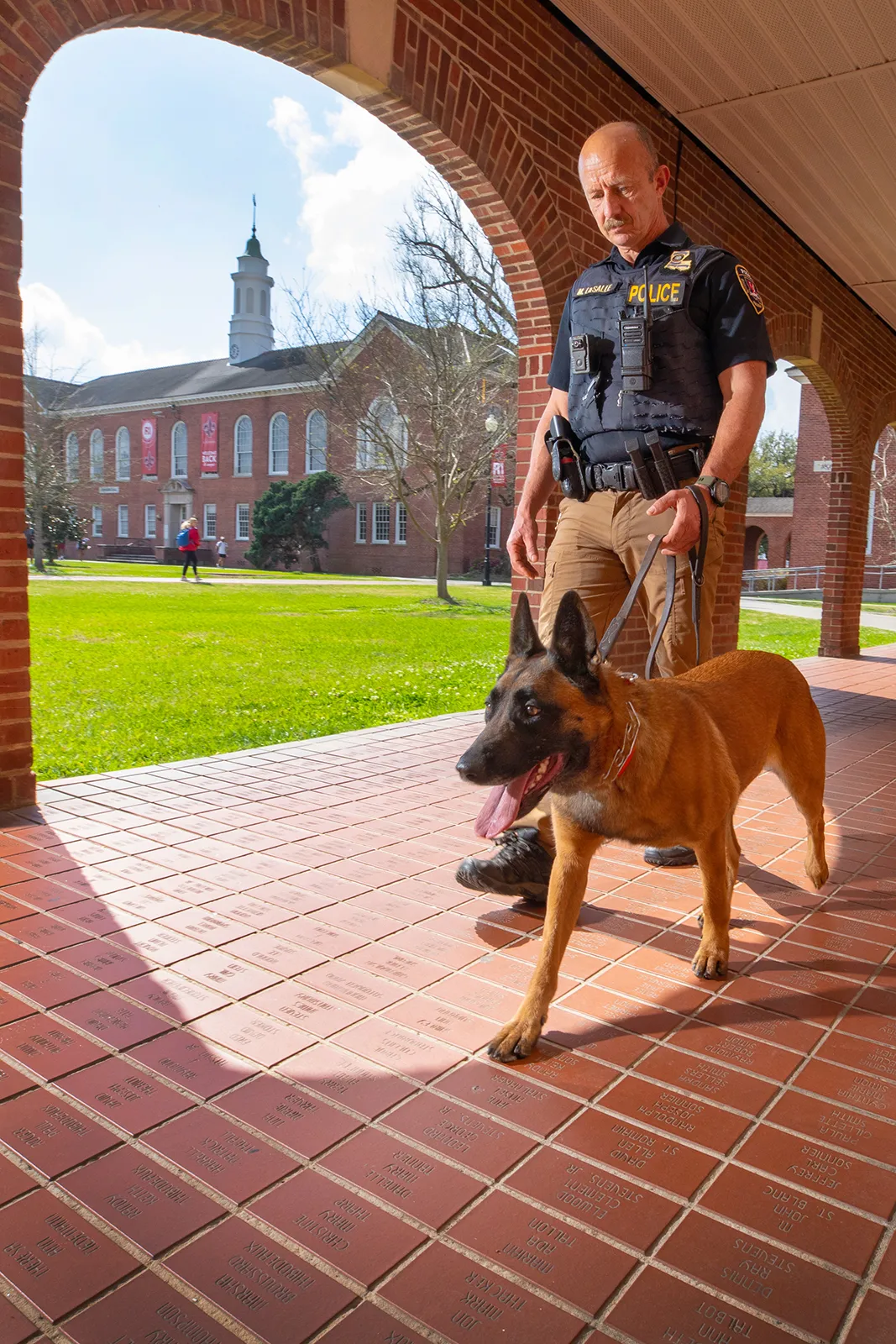 The campus just received a new K-9 dog for security. Bella is walking campus on her first photo shoot.