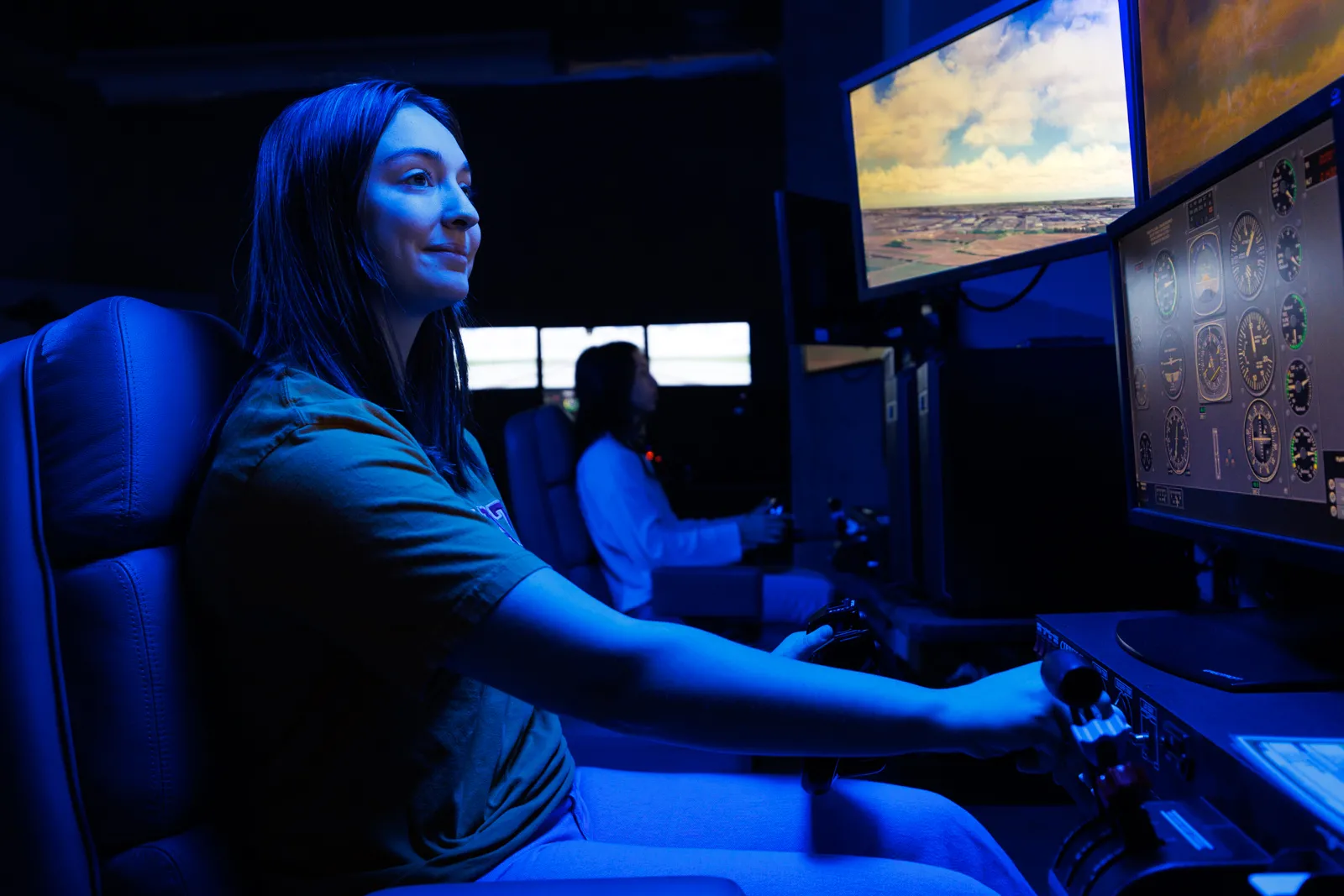 Students putting in time behind the "wheel" in the Flight Simulation Lab.