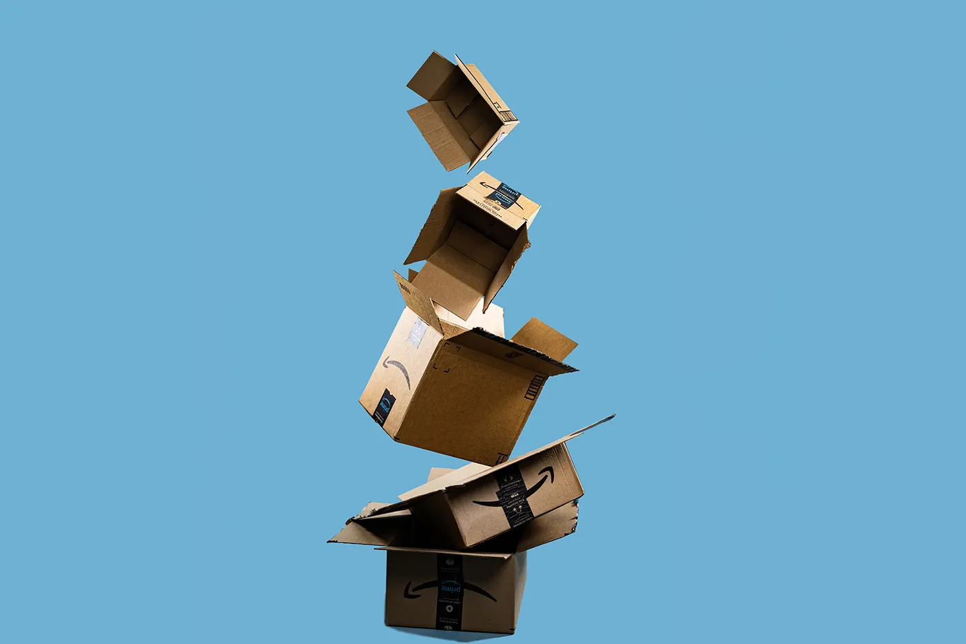 Photo illustration of Amazon boxes in the studio for a story on Amazon. Third-party sellers account for the bulk of Amazon's sales. But this new breed of small business is enmeshed in Amazon's e-commerce infrastructure in ways that both benefit and exploit them, says Moira Weigel, assistant professor of communications studies.