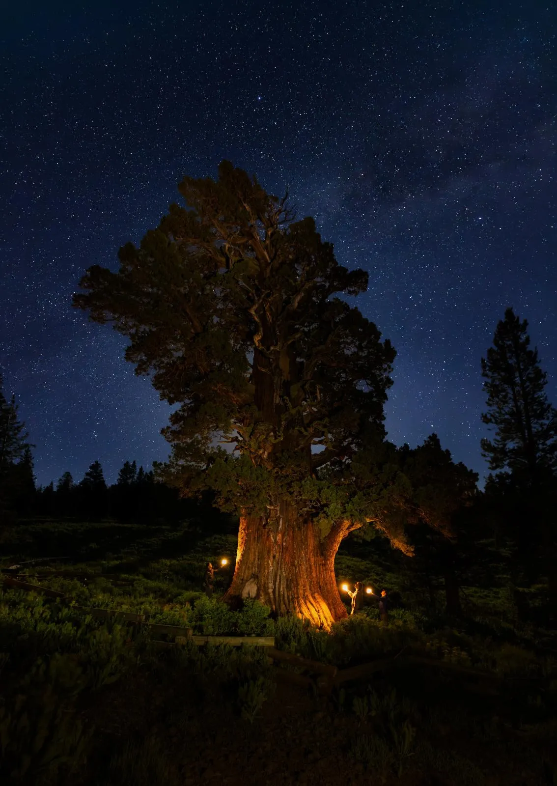 Some AI remove to clean up a couple of small areas in the brush, camera left. Composite of starry sky from a separate photo (the full moon was rising behind the tree and washed out the sky a bit).