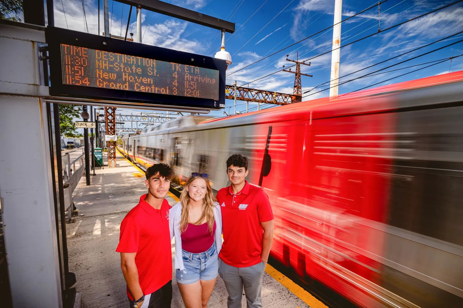 Staged photos of students waiting at a train station Downtown Fairfield on Tuesday, Aug. 19, 2025. Taken in an effort to market the area's proximity to NYC. Some generative removal in the background in post.