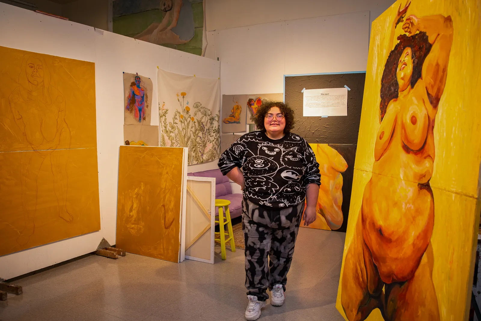 Artist and MFA student Soda paused for a moment in her art studio during the Art in the Open event at the Center for the Arts in October 2022.