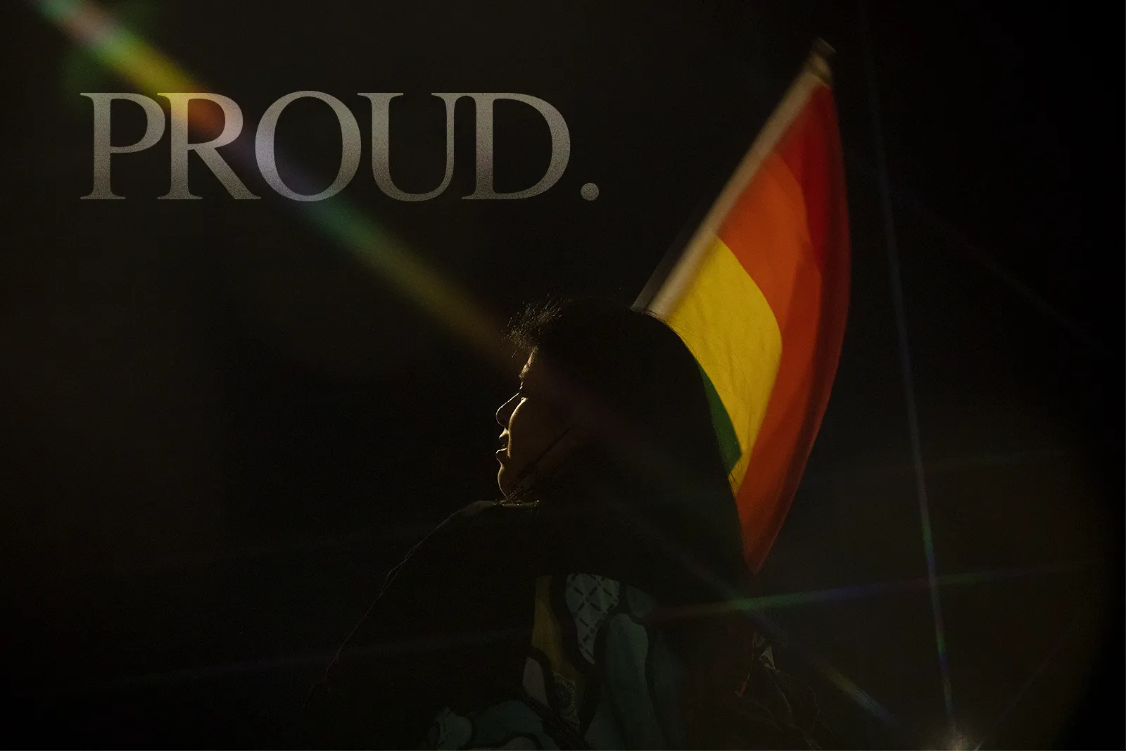 UNLV student waves pride flag at the Las Vegas Pride Parade.