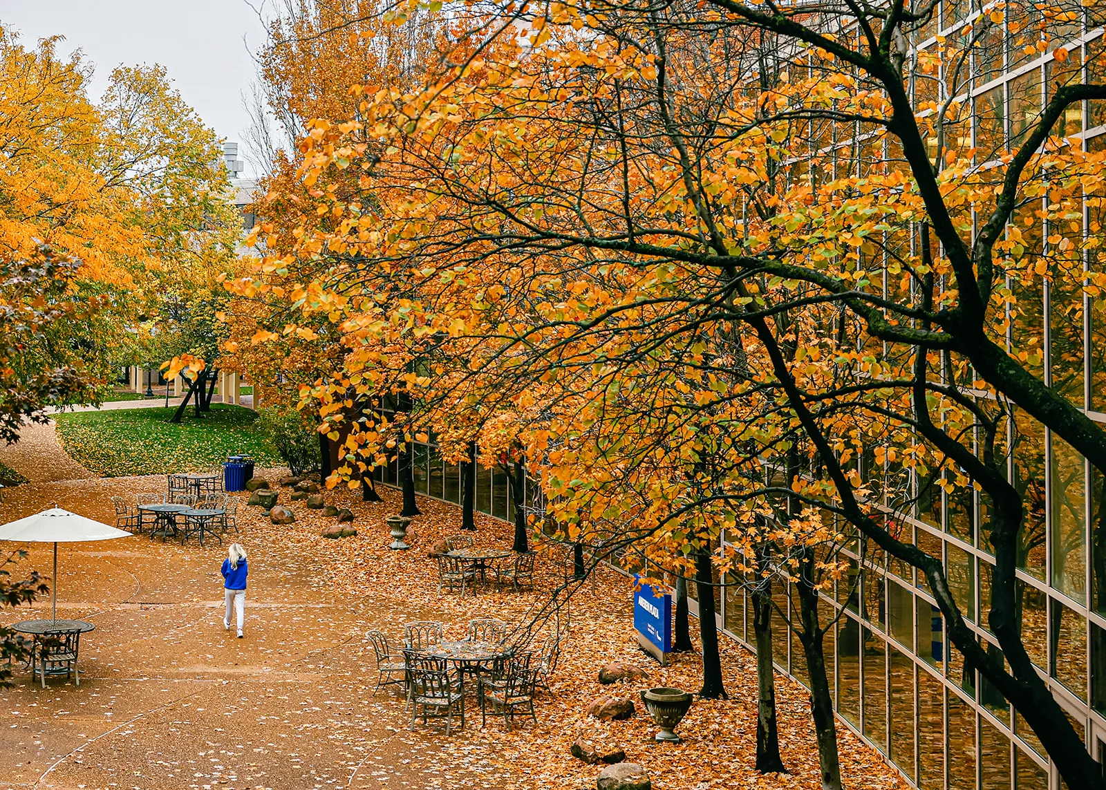 A student walks through the Ameren Plaza on October 25, 2022.