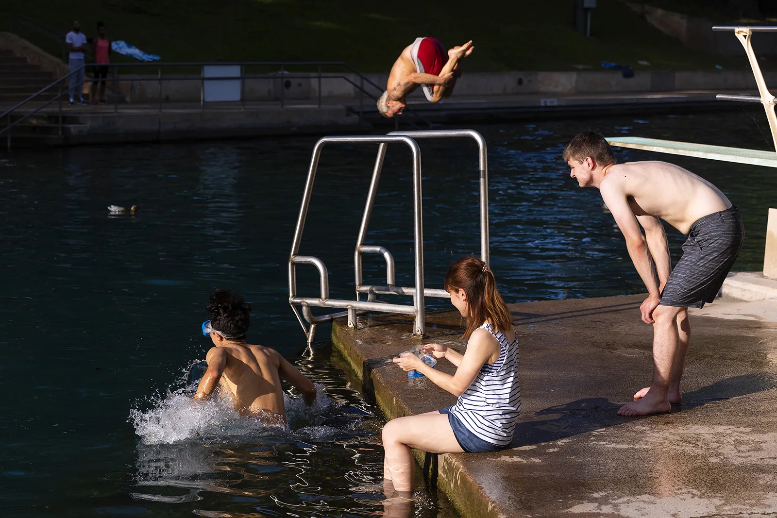 Students swim after an environmental justice class that was held at Barton Springs.