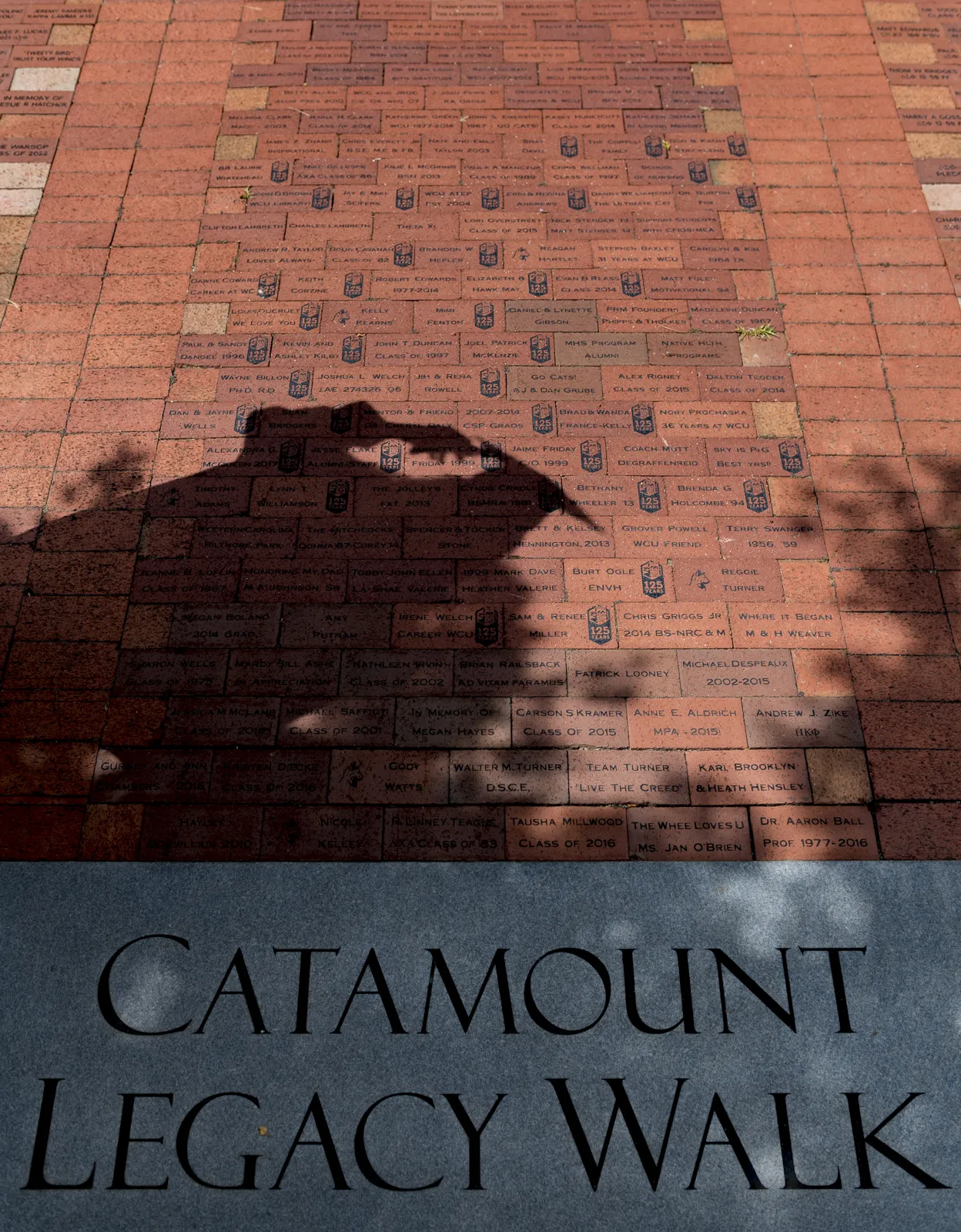 A graduate prepares to 'Walk The Walk'. The legacy walk includes brick pavers placed in honor of graduating seniors, retiring faculty and staff, clubs and organizations and to honor those Catamounts who are no longer with us.