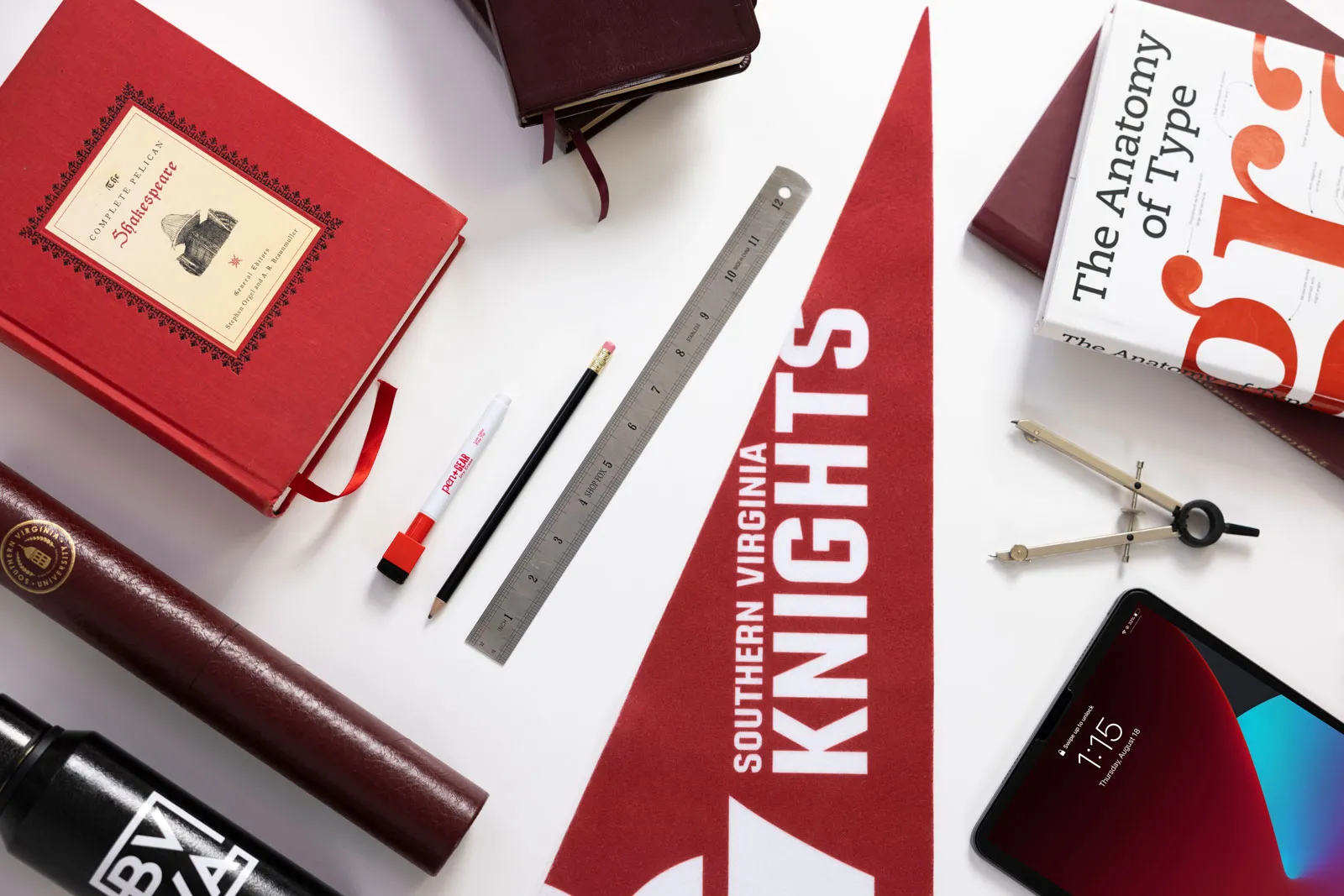 A university stylized flatlay is prepared to welcome back students.
