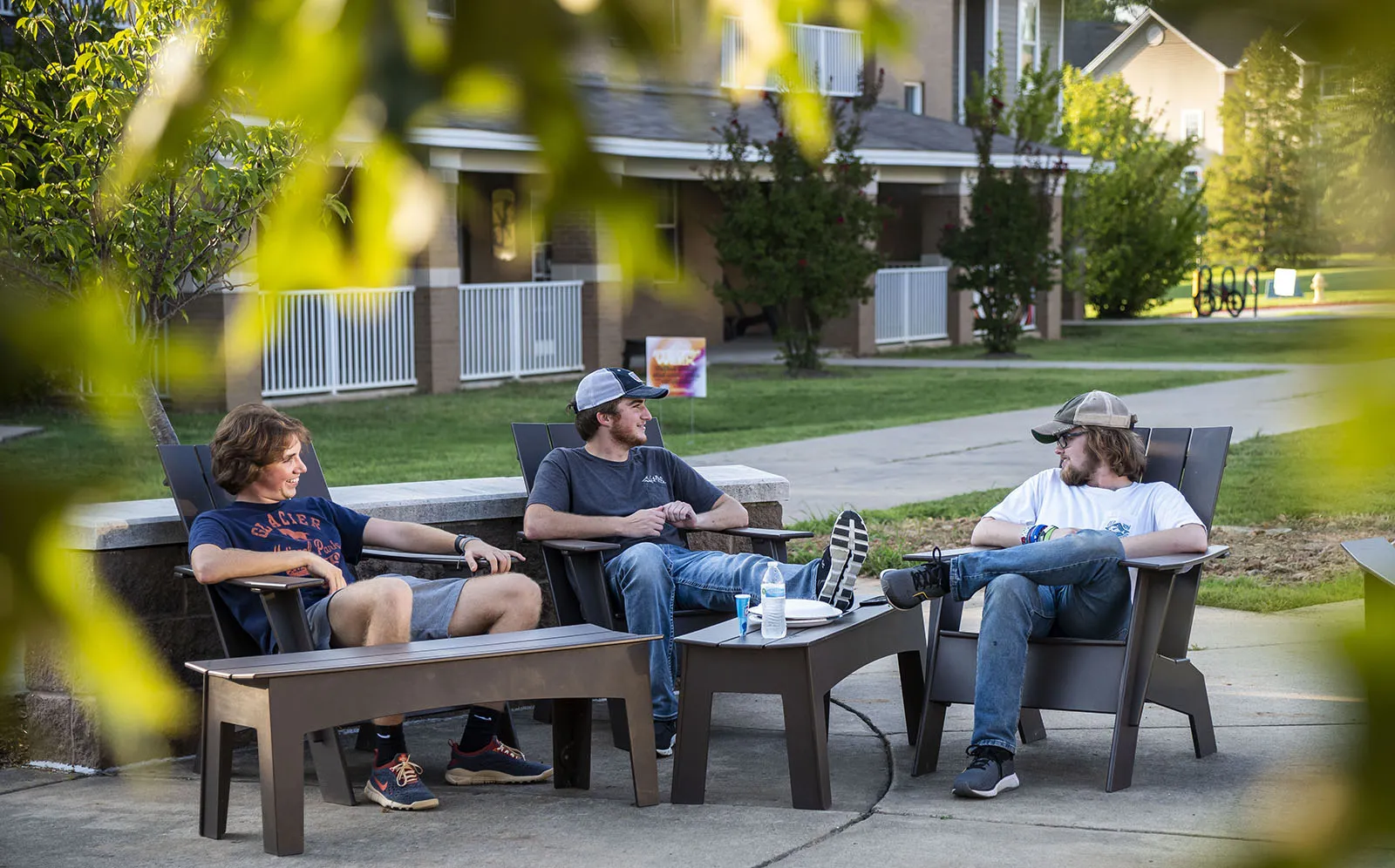 Students hang out in the adirondack chairs during Grillin on the Green during Welcome Week Events.