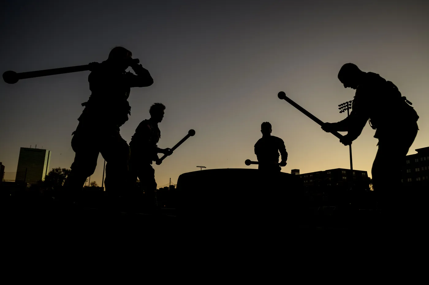 Members of the ROTC program participate during an early PT session on Carter Field.