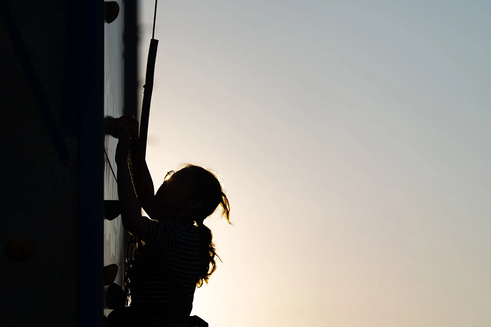 A student's silhouette can be seen rock climbing during the university's Rec Fest event on August 23rd, 2025.