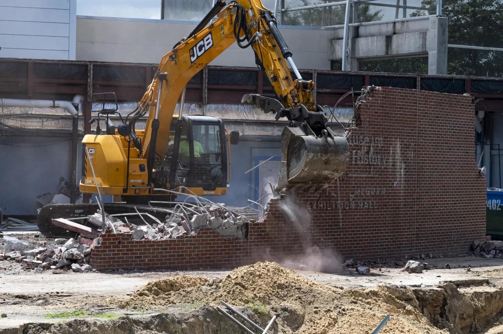 The front wall of the campus natural history museum is torn down while the museum undergoes major renovations. The wall greeted visitors since the museum's opening in this building in the 1990s. Many visitors took group photos and selfies in this very spot to commemorate their visit. The wall also displayed large banners of current exhibits and special features. It was bittersweet to witness it's destruction.