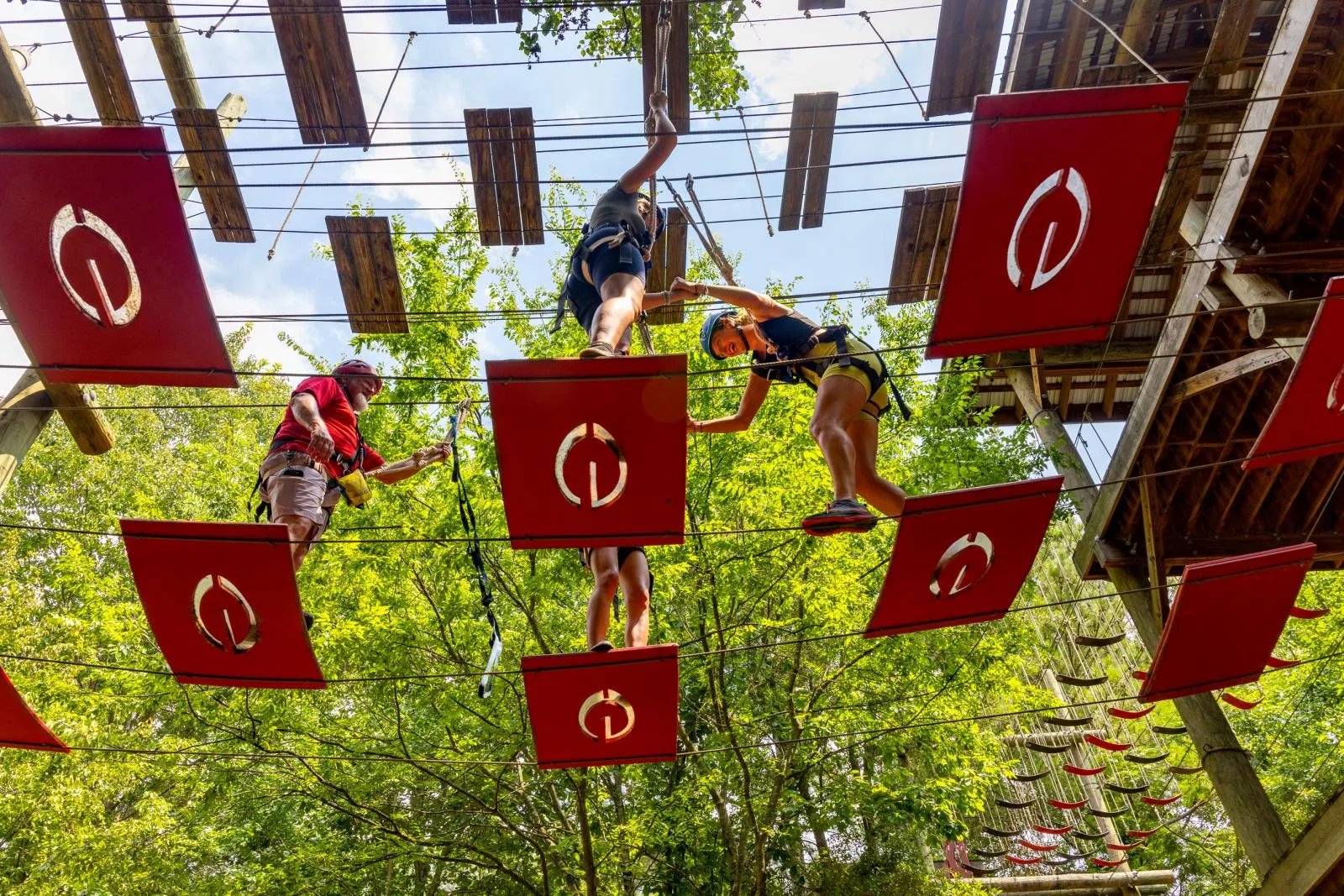 Incoming freshmen participate in team-building games at the challenge course.