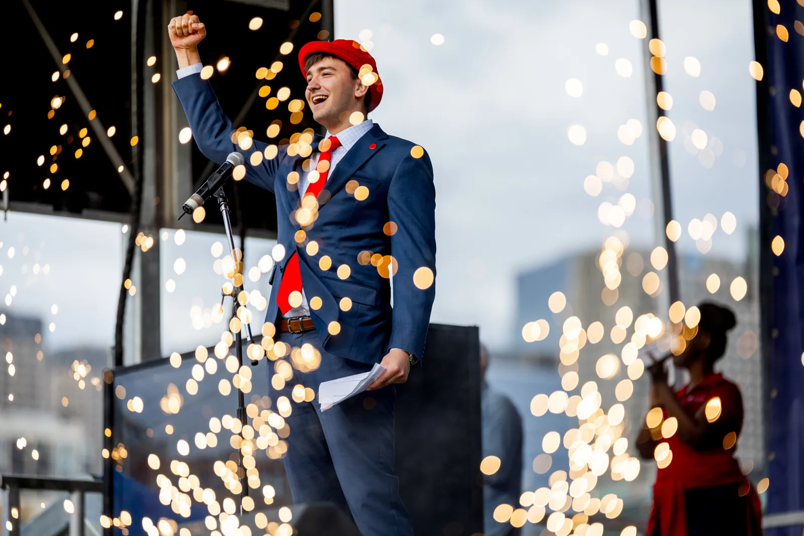 Student Trustee rallies first-year students at University of Illinois Chicago's Convocation event on Wednesday, August 27, 2025.