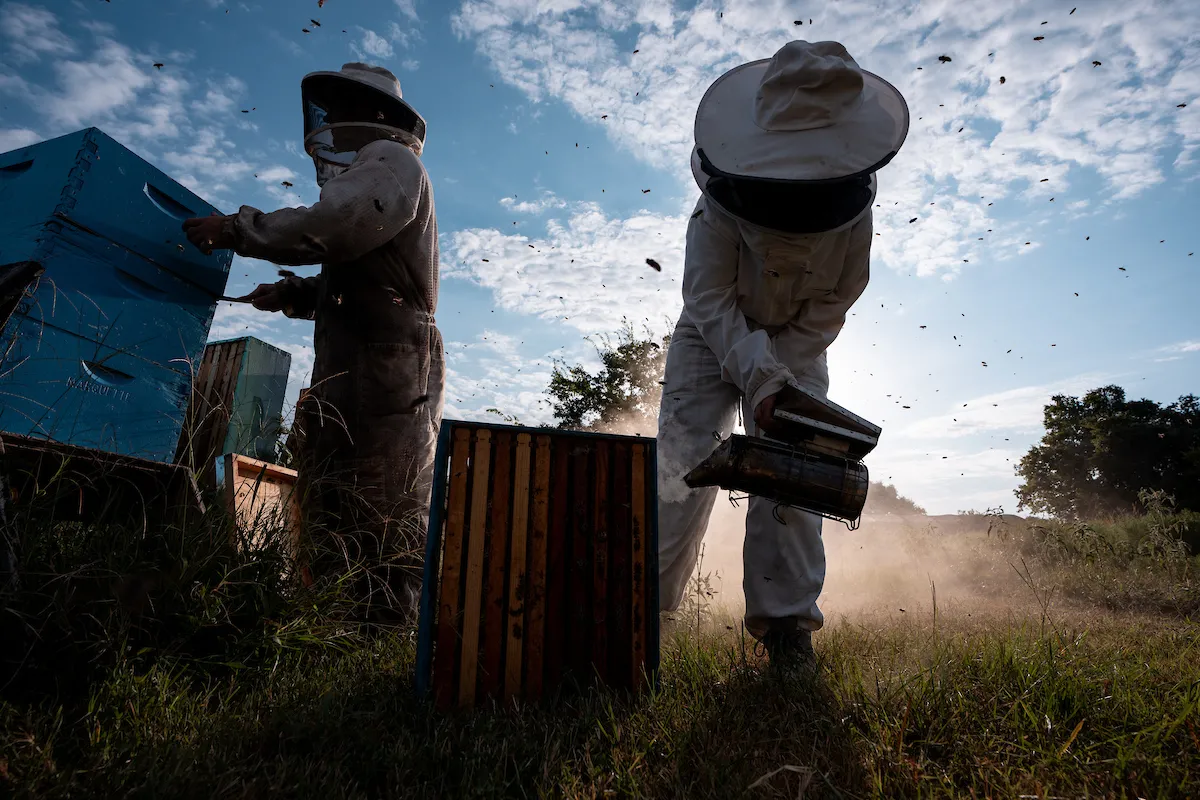 Students extract honey from the bee hives at the Janice and John G. Thomas ’59 Honey Bee Facility on Saturday, August 2, 2025