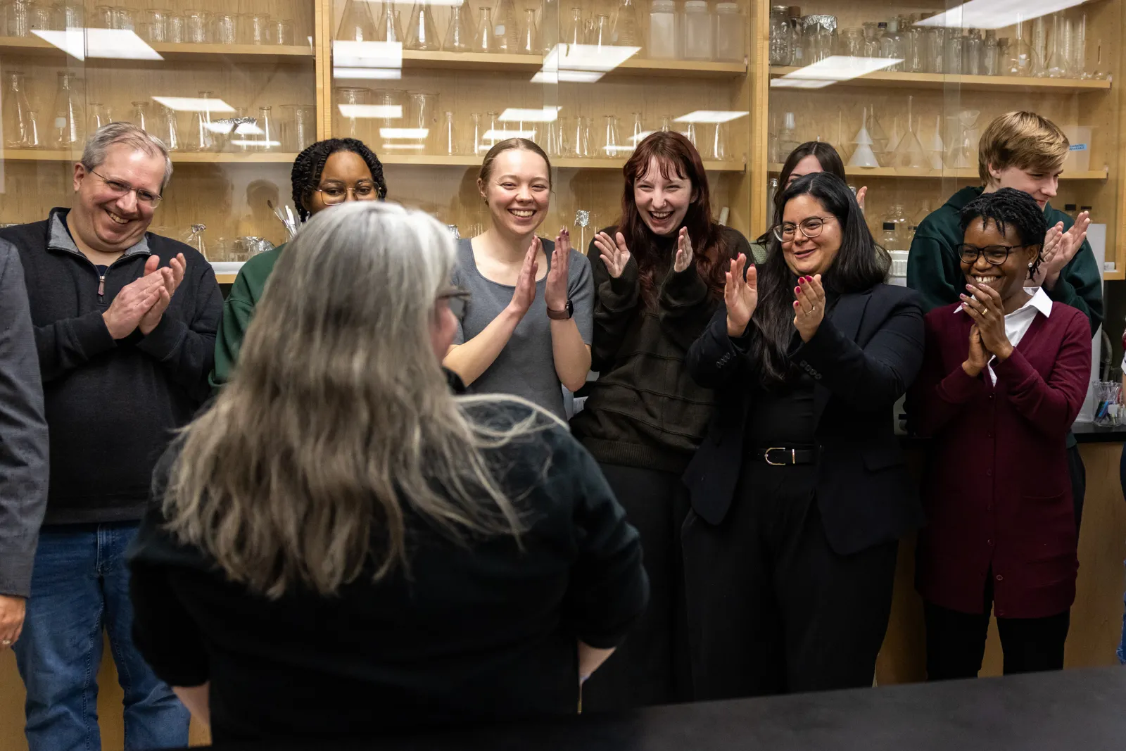 A proud moment, Dean Hilary Seo of Iowa State University receives a medallion from President Wendy Wintersteen for her formal installation as the inaugural holder of the endowed "Colonel Gary G. Swenson Ph. D. Dean of Library Services" chair in a ceremony on November 3, 2025.