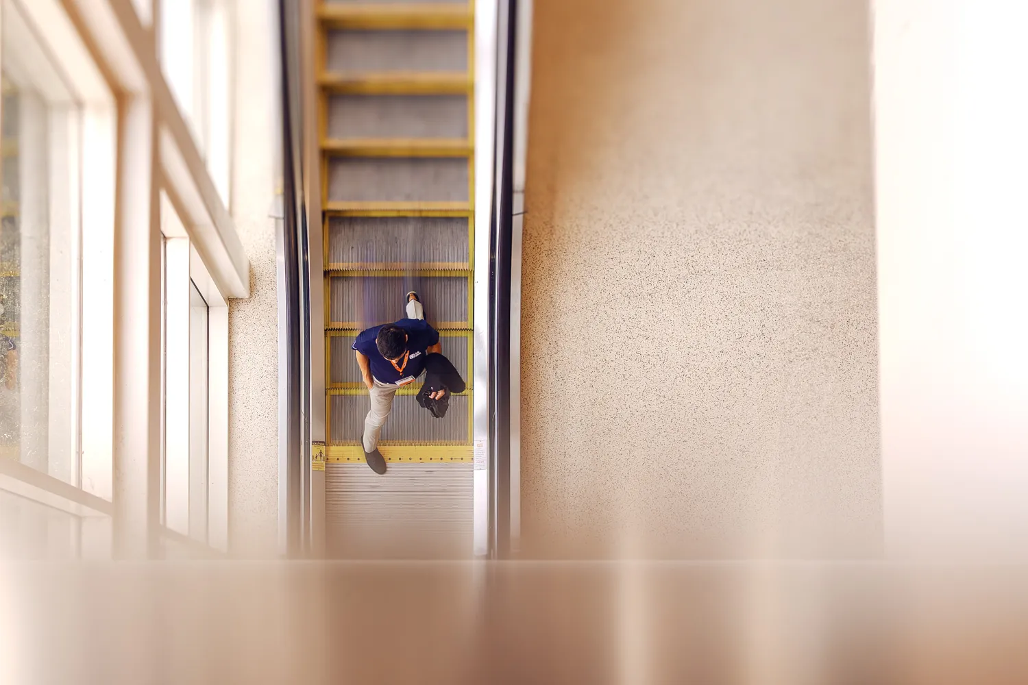Photographing career day event and caught this student stepping off the escalator.