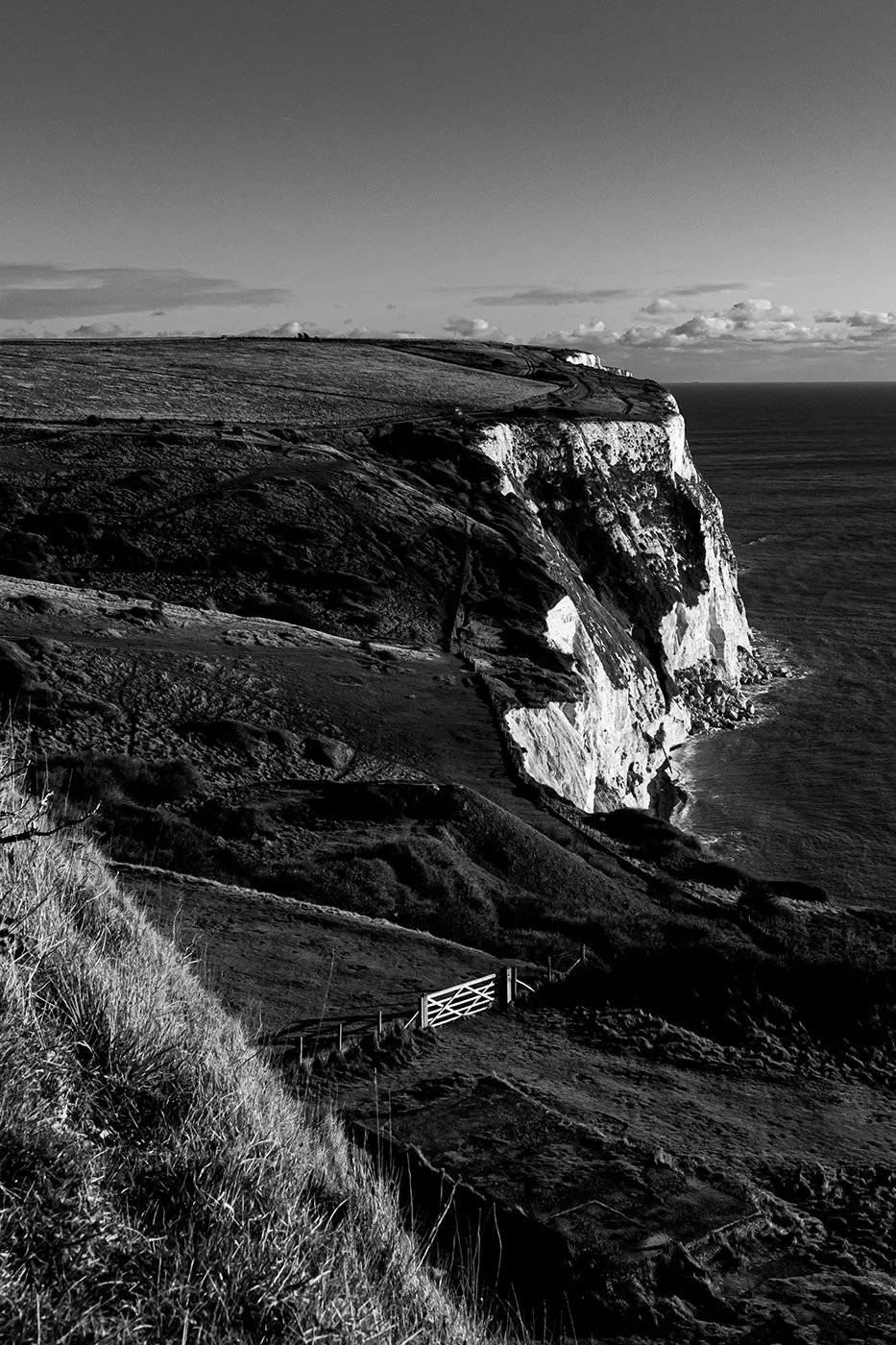 View of the White Cliffs of Dover taken at dawn while hiking along the coastline.