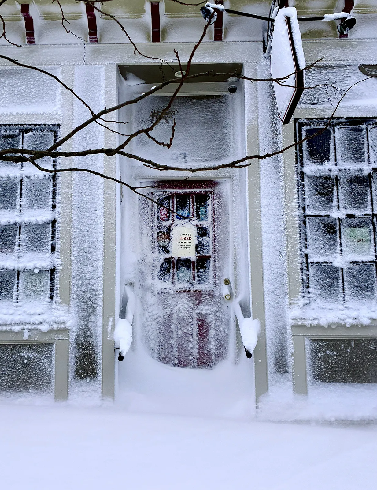 A Fox Point business is closed during a blizzard on February 23, 2026.