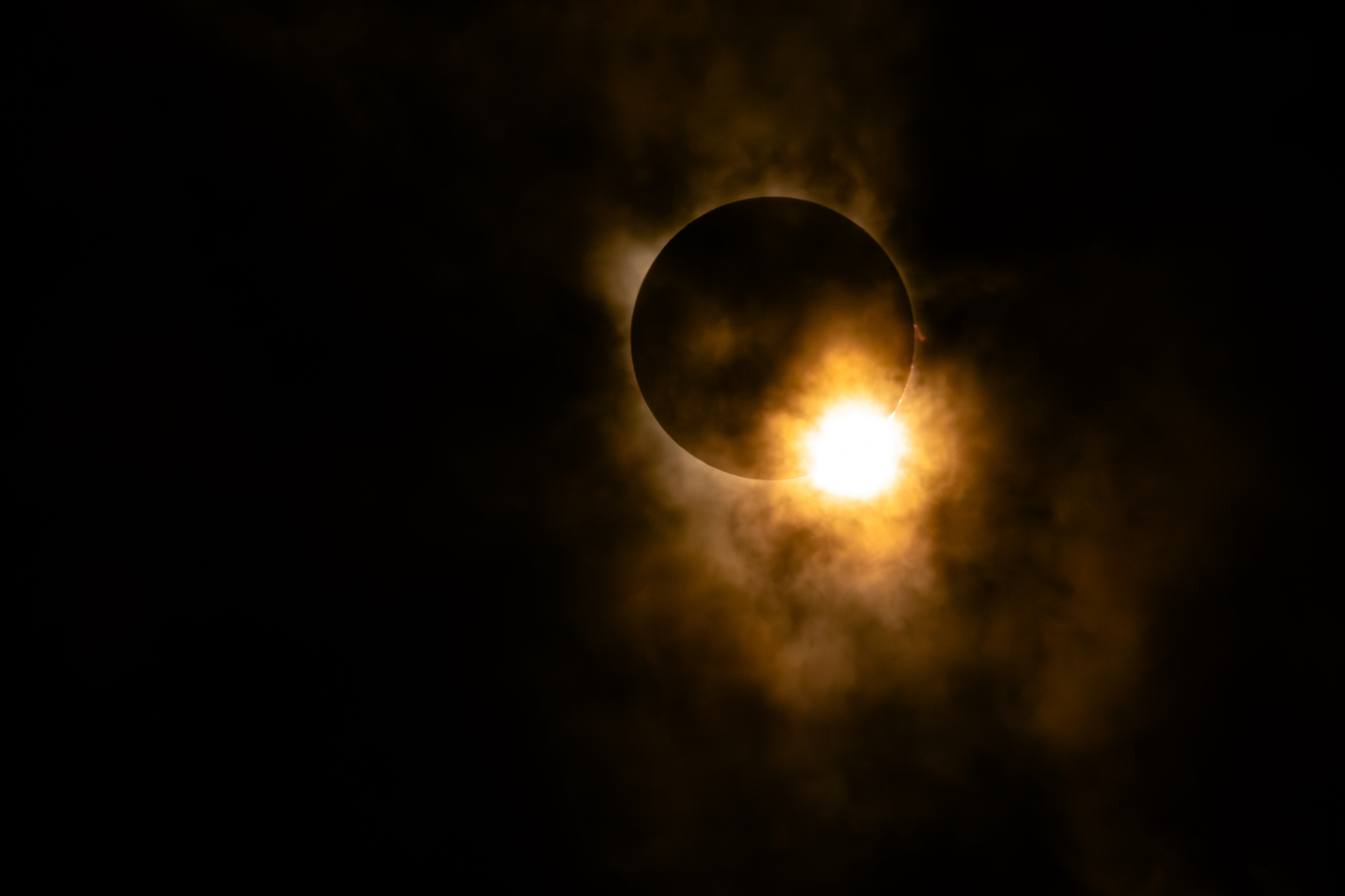 Bailey's beads (diamond) appears through the clouds during the eclipse in April of 2024
