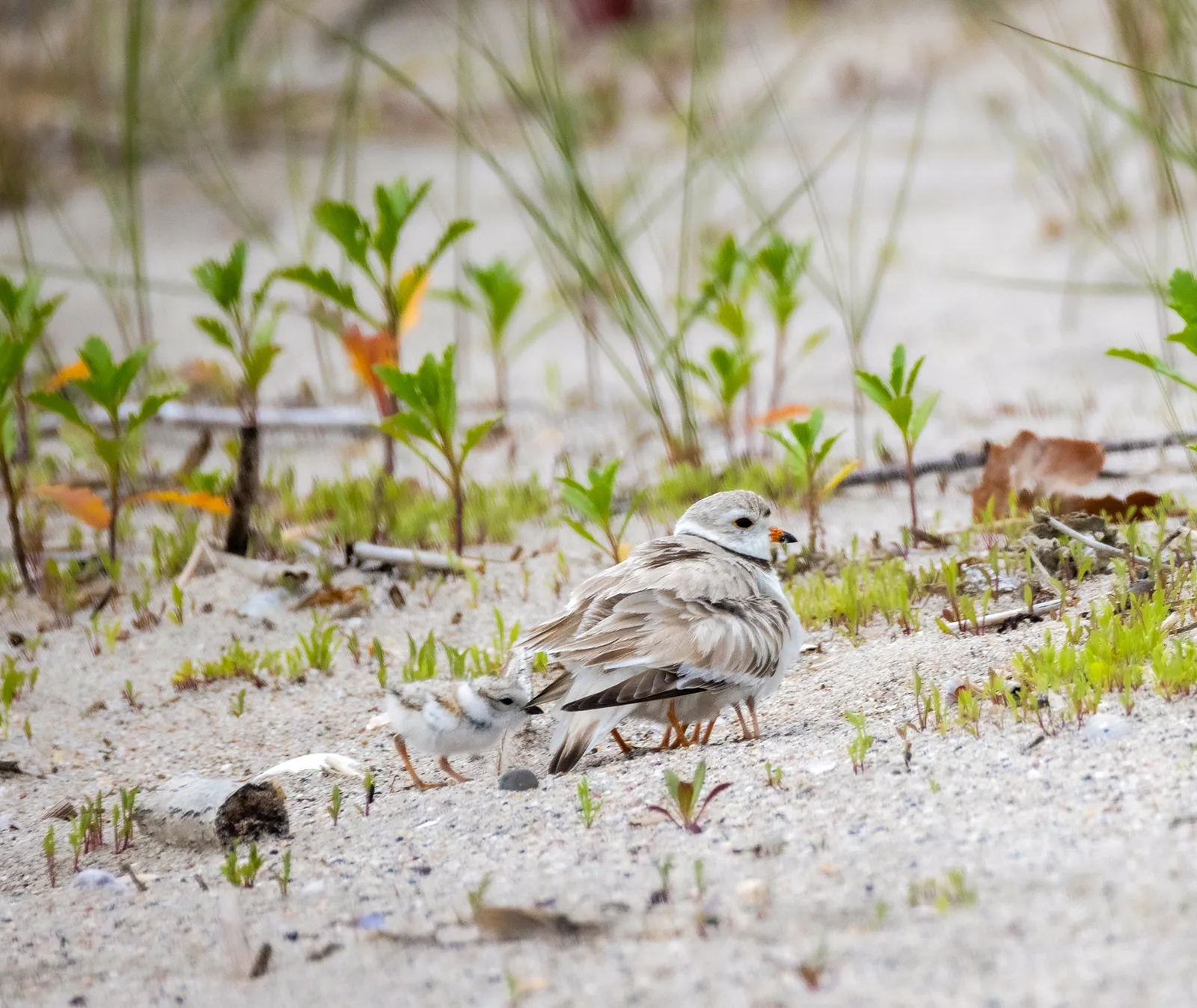 A piping plover chick tucks under its mom to join several siblings already warming up under her wings. Though the chicks forage from birth, they cannot regulate body temperature and need to check in regulary with their mother for warmth. These tiny migratory shorebirds have protected nesting areas along the Long Island Sound and are always a treat to see during the May breeding season.