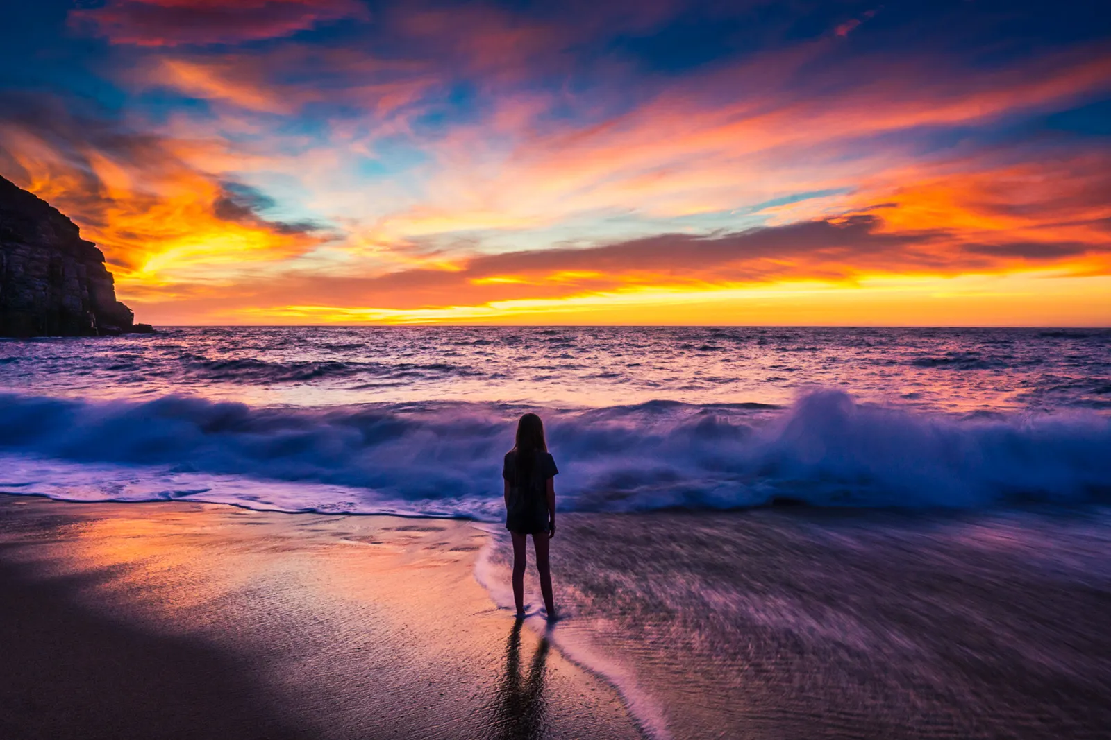My daughter enjoys the beauty of another Baja sunset during our spring break vacation.