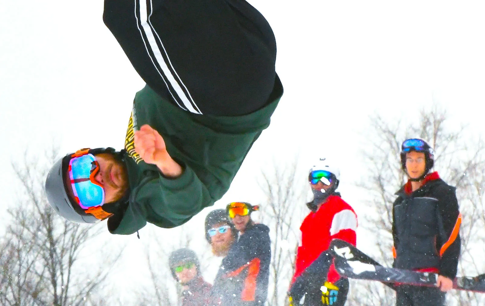 A student flies high on a snowboard during a winter festival on the Clarkson University in March, 2018.