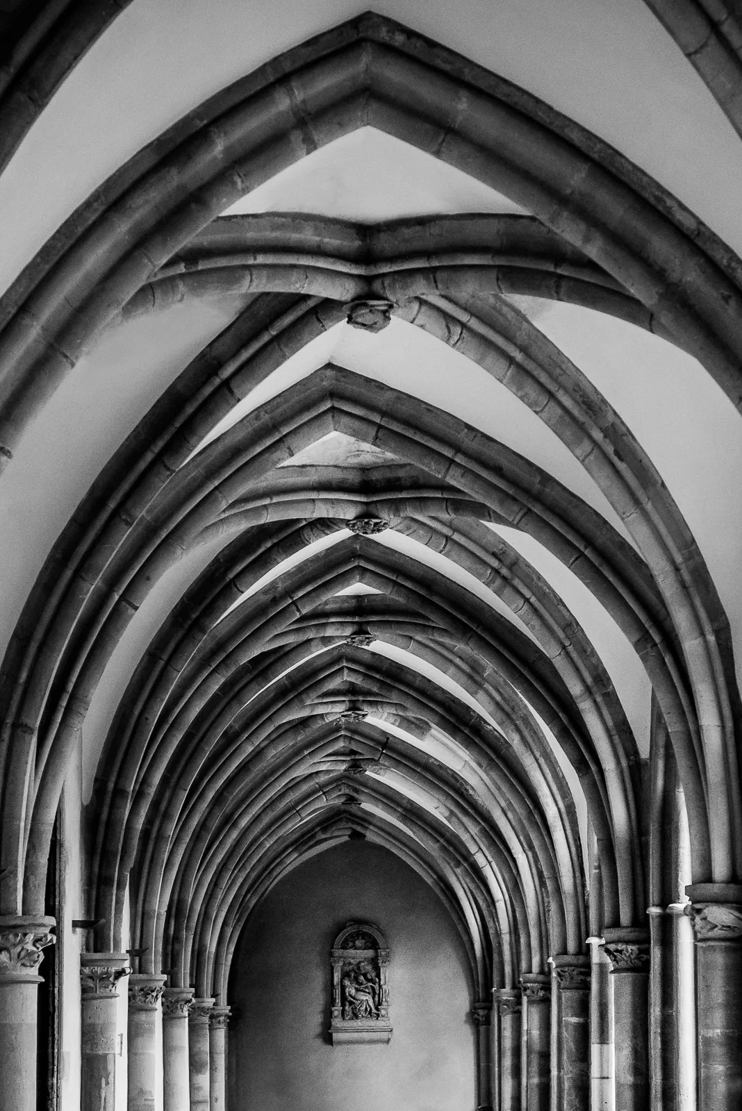 Outside corridor at the oldest Gothic church in Germany, built in the 13th century.