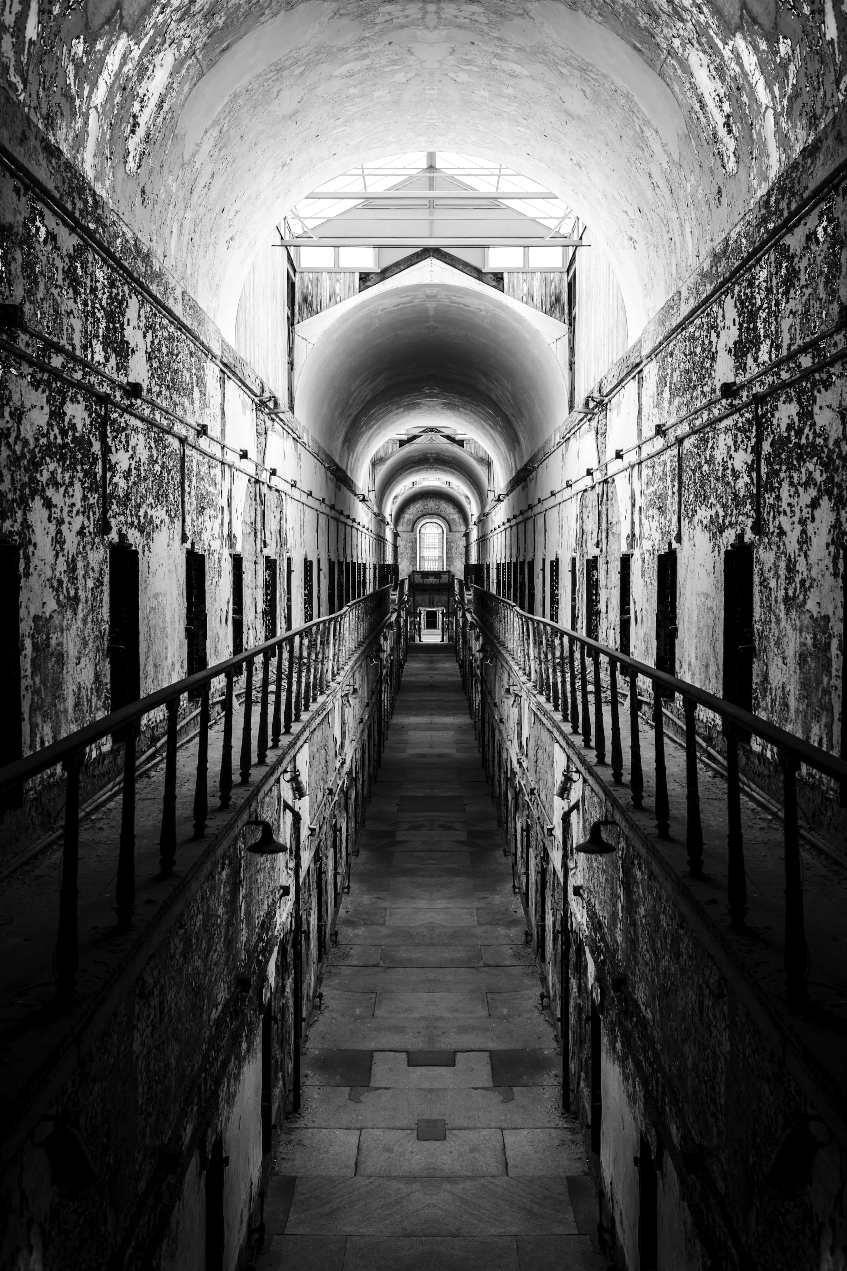 A view from the 2nd story of one of Eastern State Penitentiary's cell blocks.