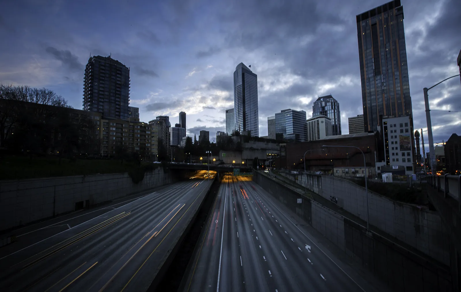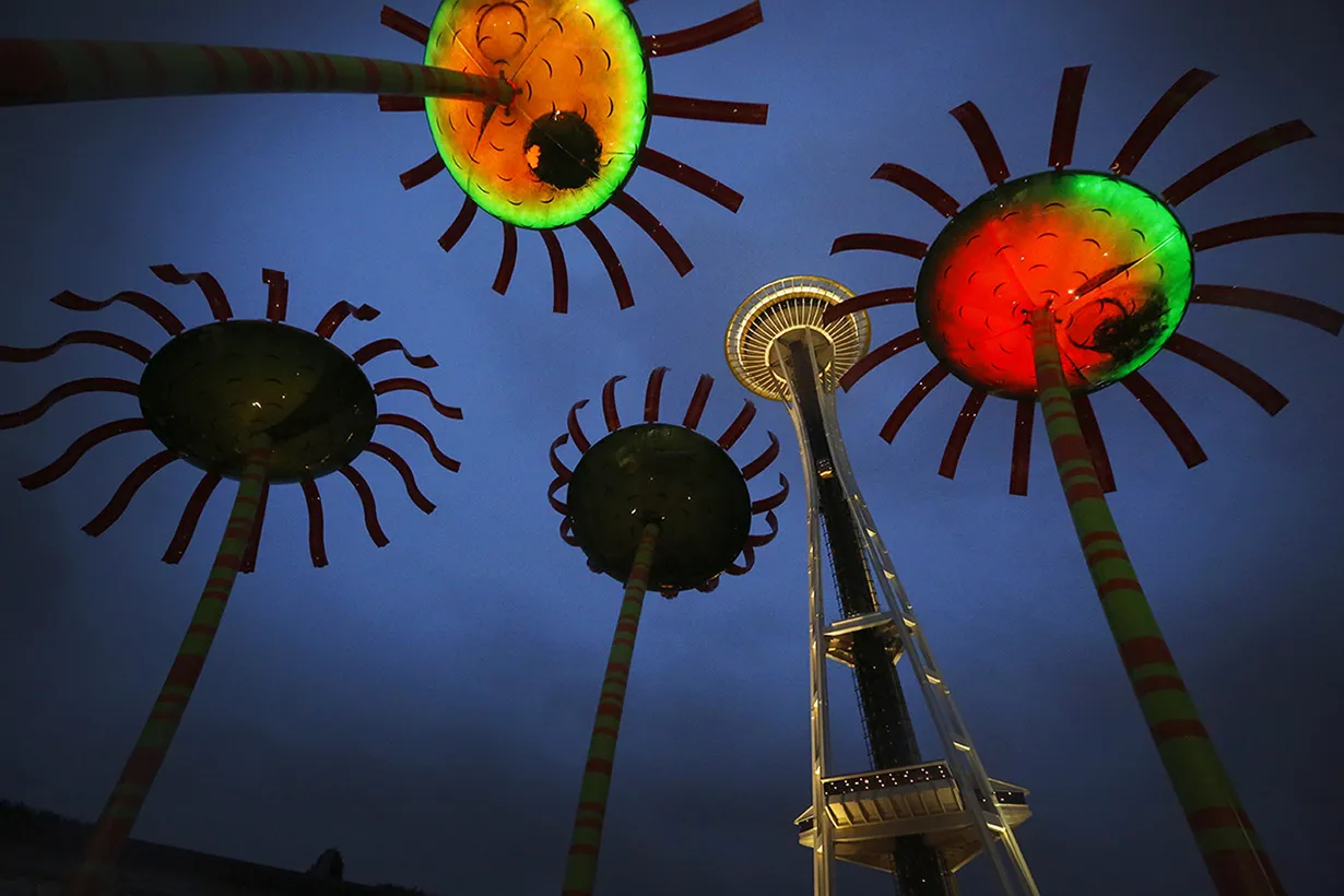 This is a beautiful winter evening in Seattle under the Space Needle and the Sonic Bloom art piece.