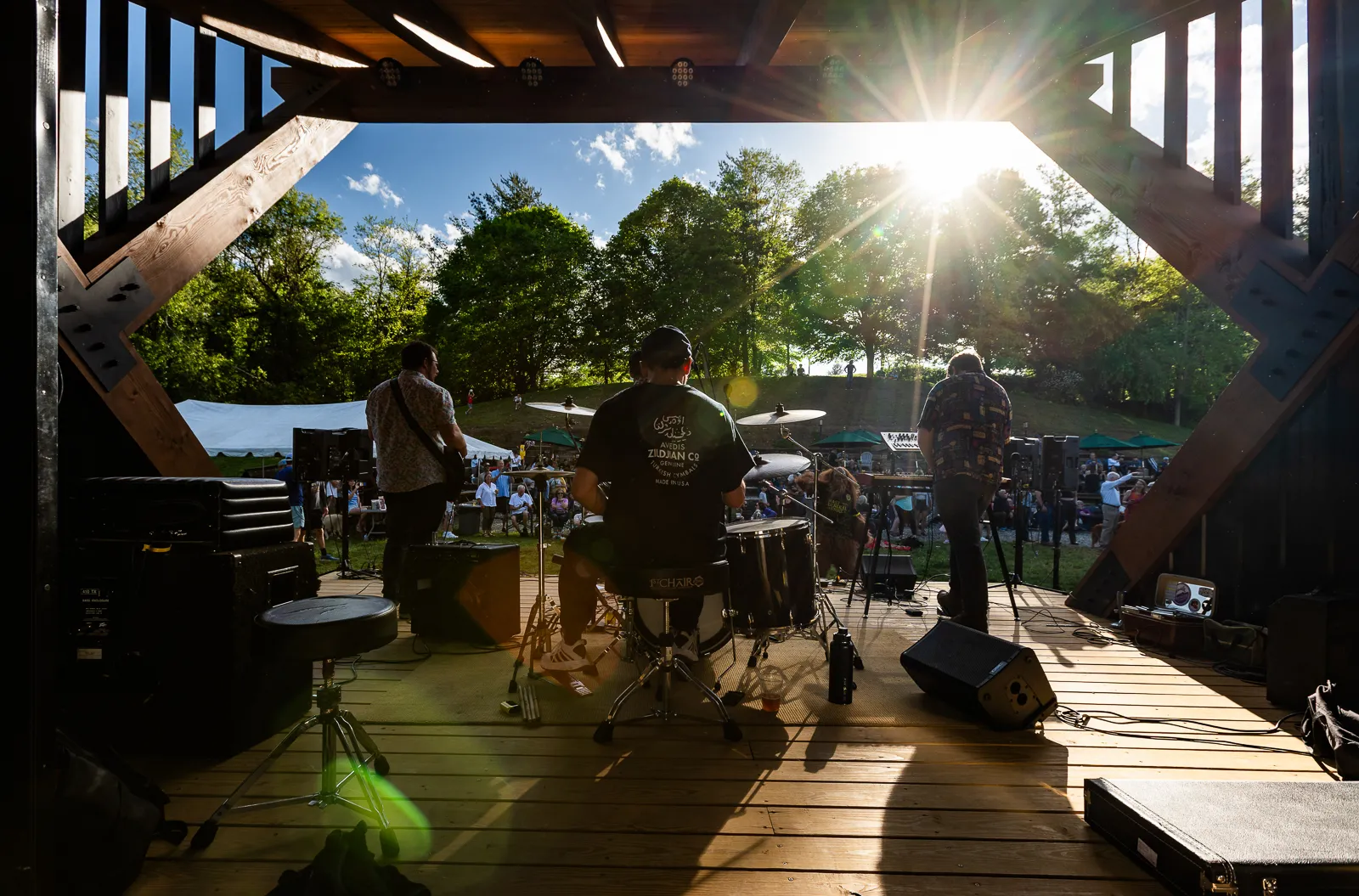 The sun begins to go down at Booneshine Brewing Company during an energetic live music set by Greylan Hall & The Nasty Kings on May 17, 2025.