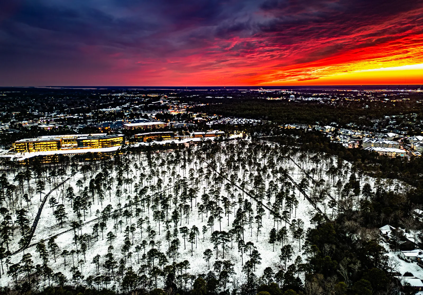 A fiery sunset on a snowy night in Wilmington, NC on January 23, 2025.