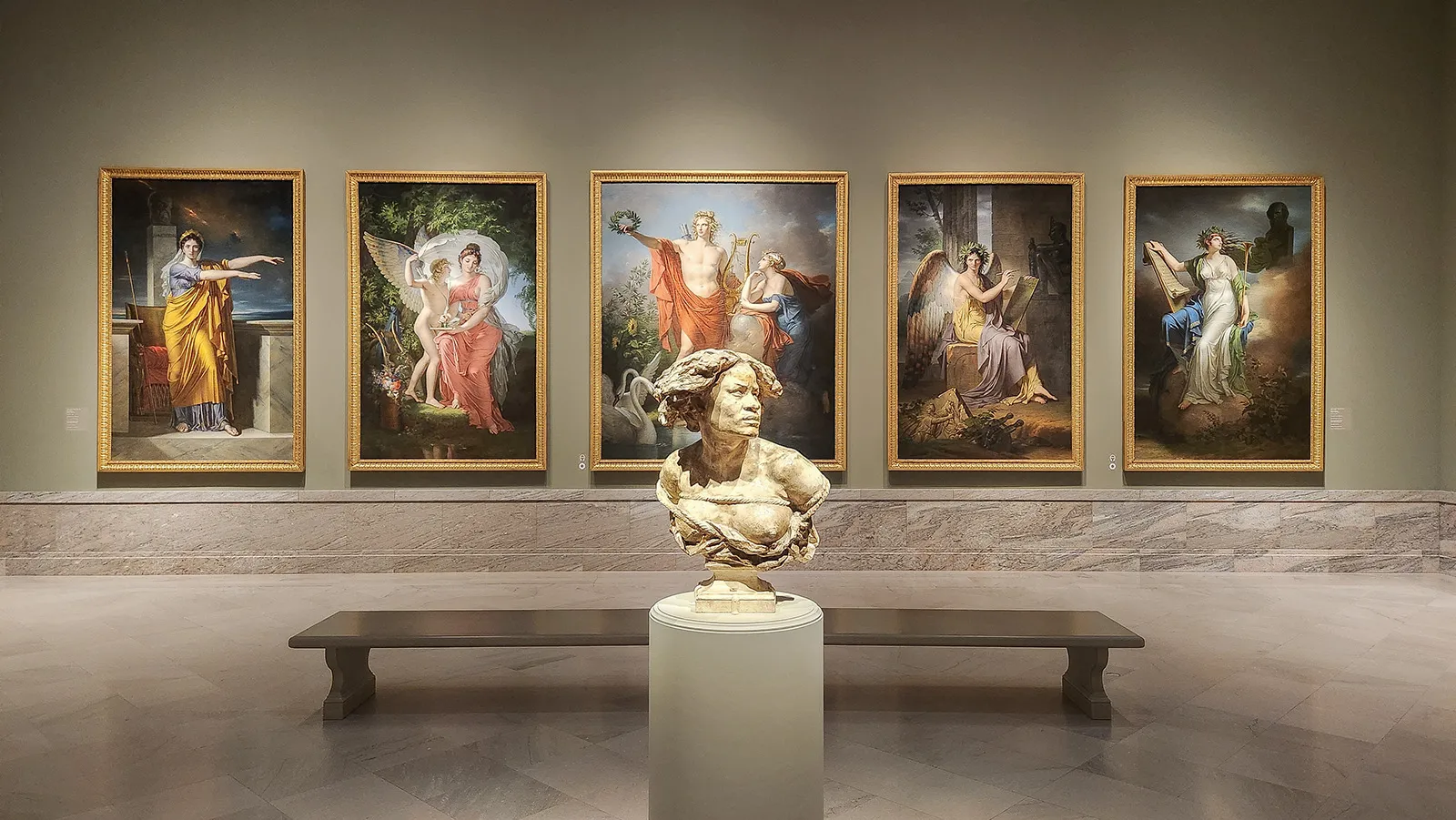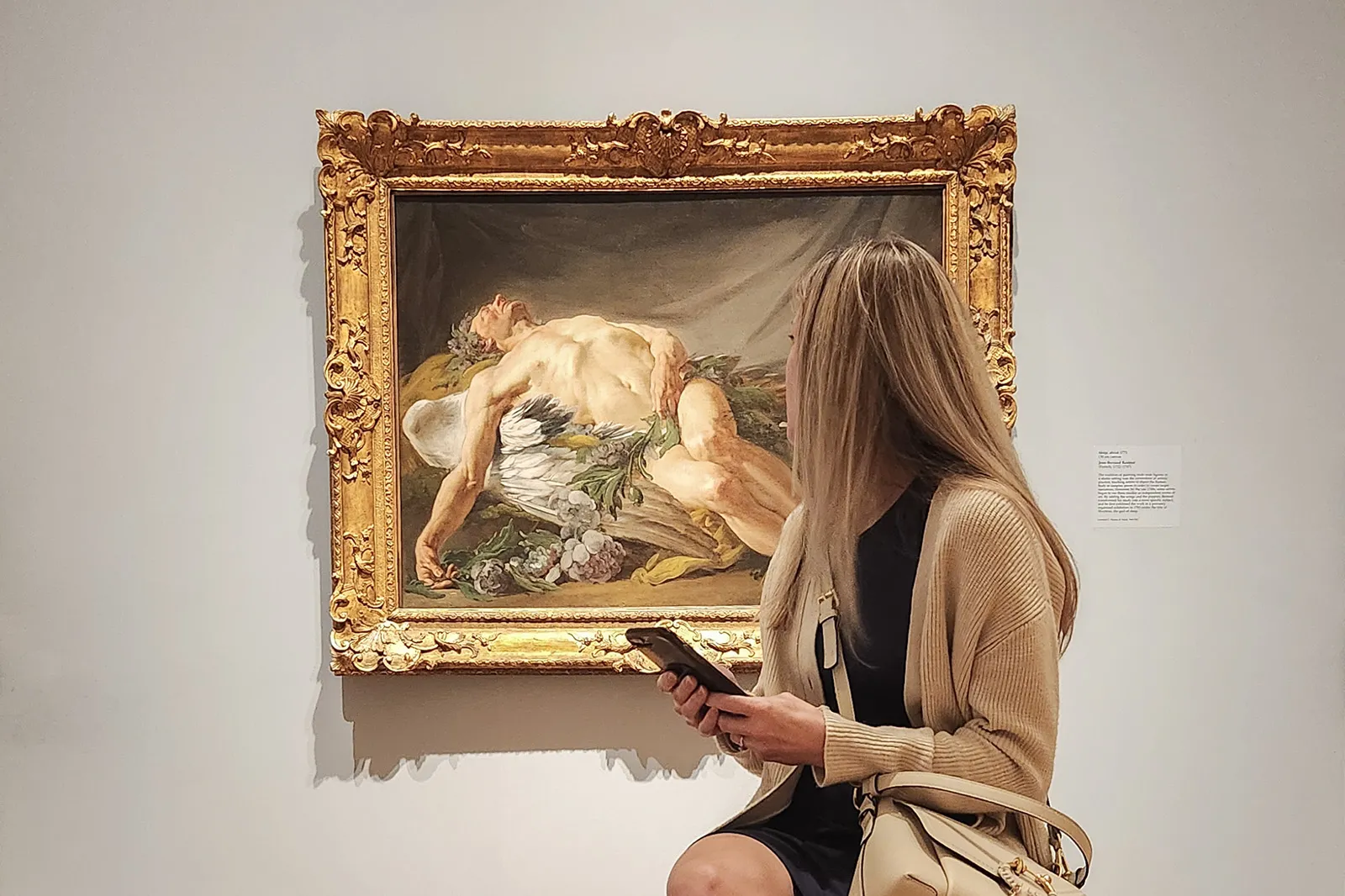 A visitor to the Cleveland Museum of Art looks back at the painting "Morpheus," by French artist Jean-Bernard Restout.