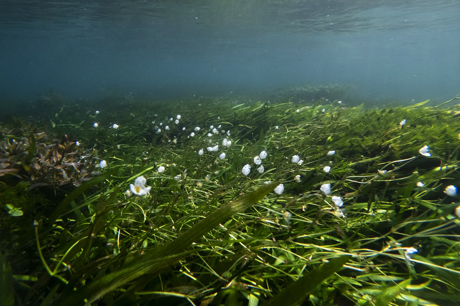 A small meadow of white underwater flowers at Gilchrist Blue Springs.
