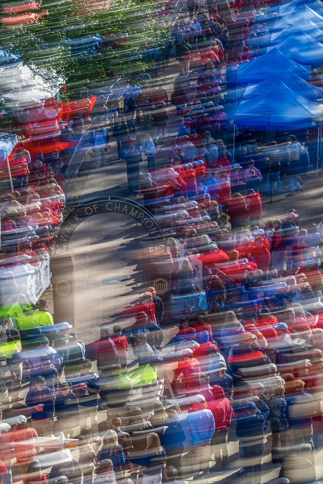 Tailgaters gather along the Walk of Champions getting ready to welcome the Ole Miss football ahead of its first College Football Playoff game against Tulane on Saturday, Dec. 20, 2025.