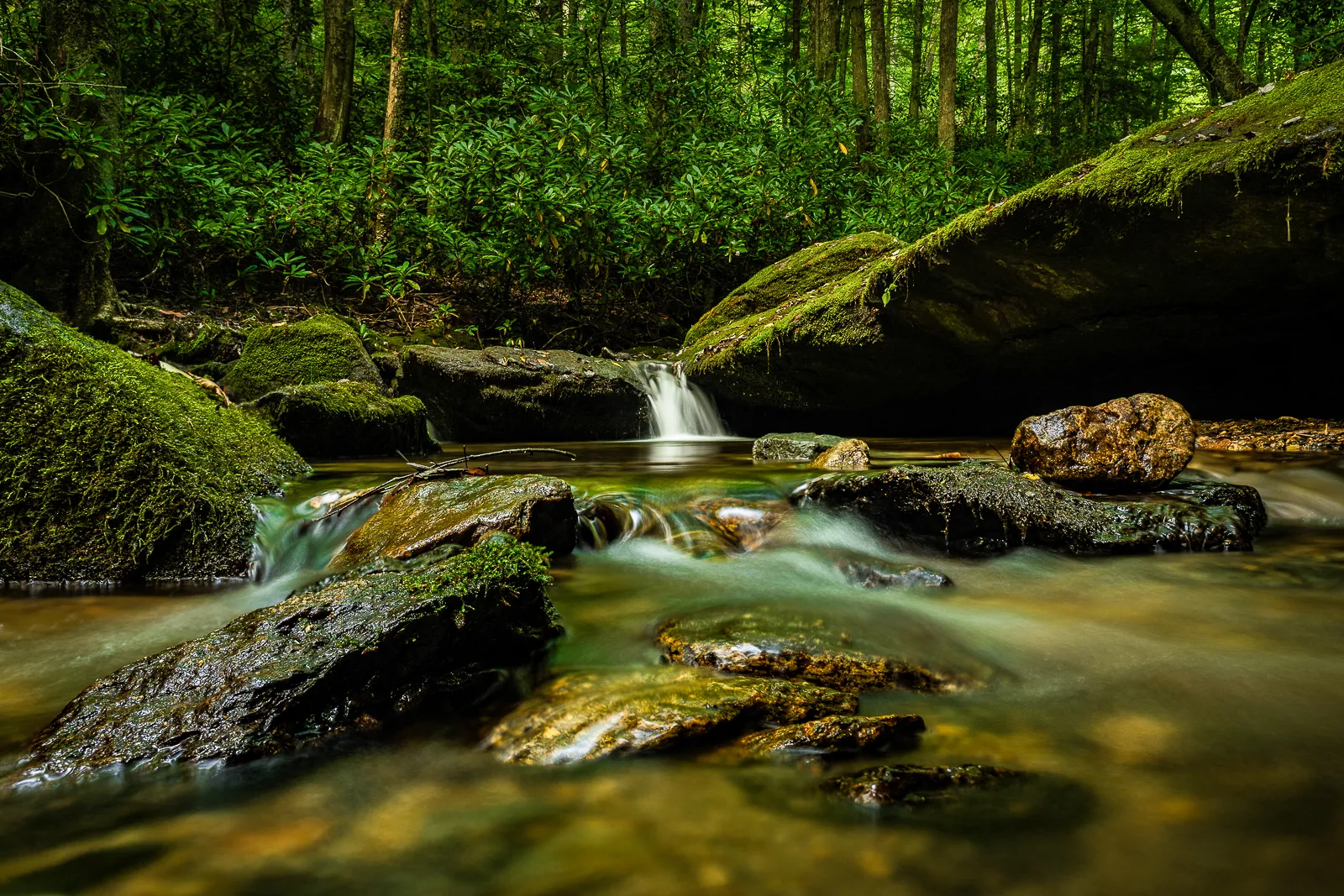 A beautiful scene on the Mountains to Sea Trail in Boone North Carolina at Goshen Creek Trail. This image is a composite of 5 images for a focus stack.