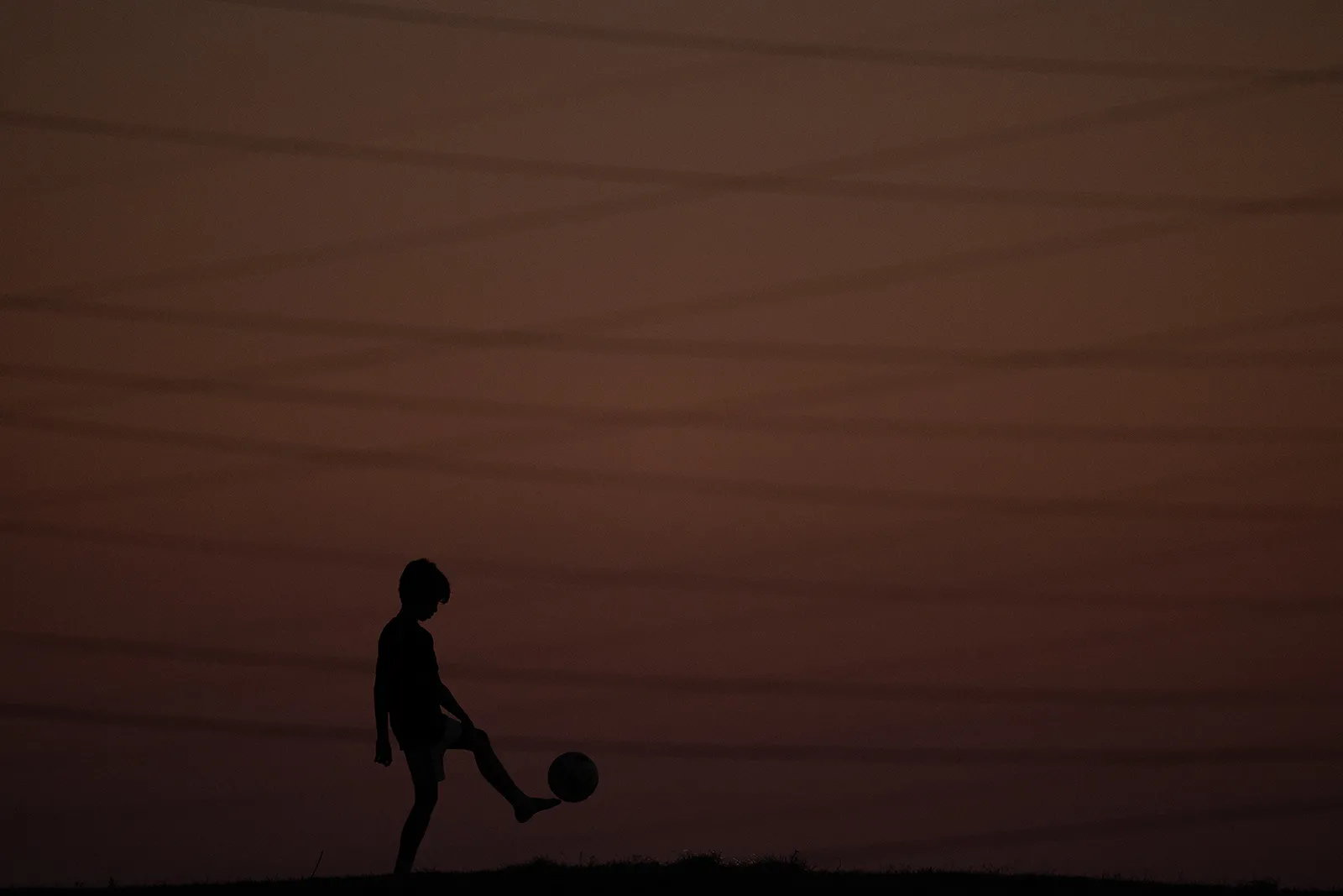 A young fan dribbles a soccer ball during a high school match between Greenwood and Ohio County in Bowling Green, Ky.
