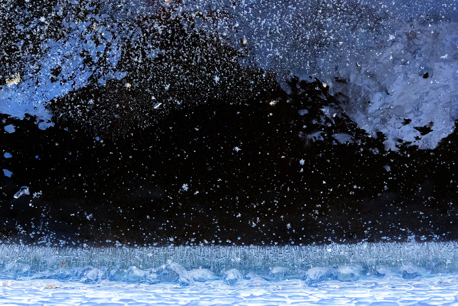 This is a straight shot. I have my forearms resting on the edge of an above ground frozen swimming pool, shooting straight down, focusing on where the "waterline" meets the side of the pool.
