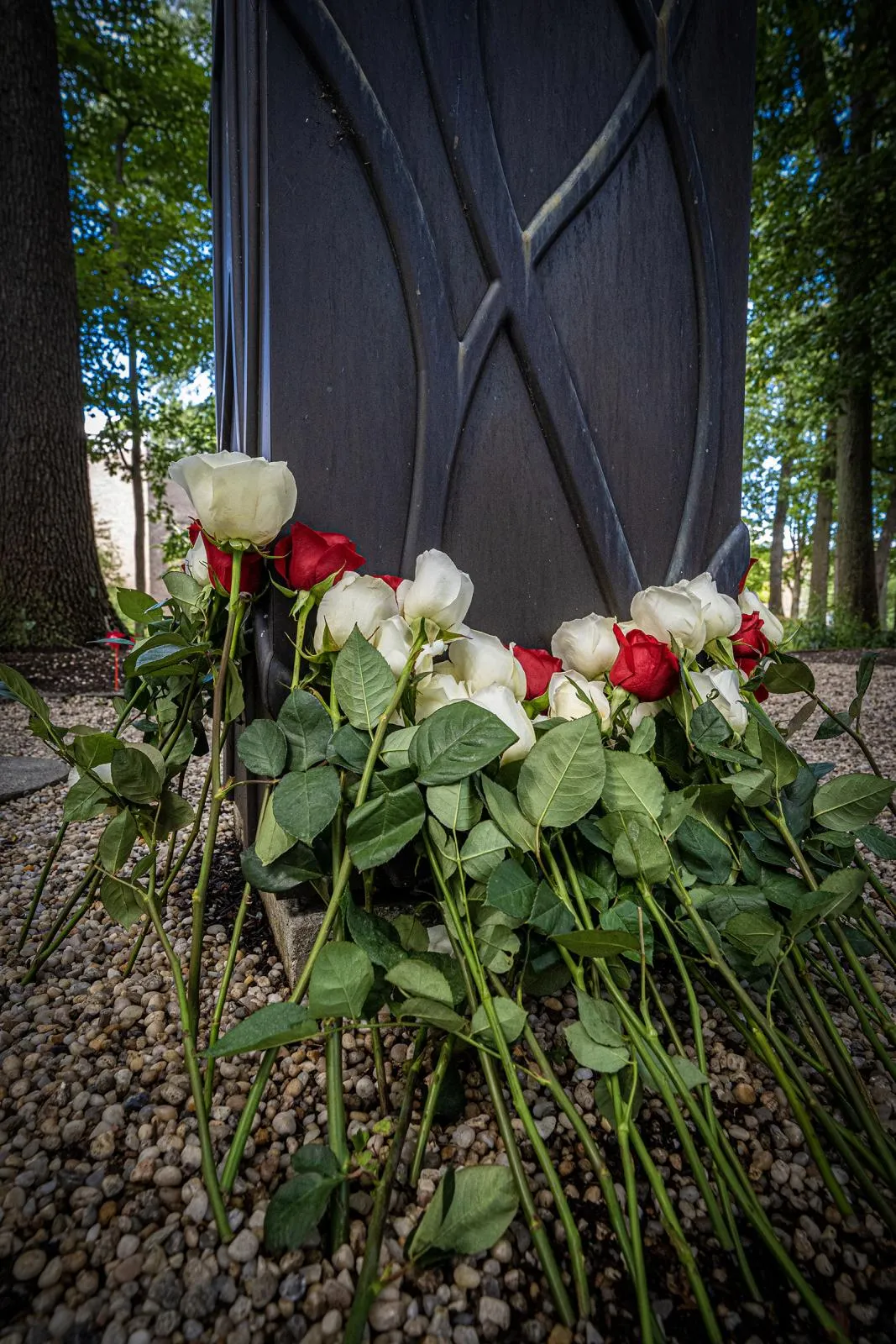 Flowers placed in remembrance of the 21 Stony Brook Alumni who perished on 9/11 at the Memorial Arch.