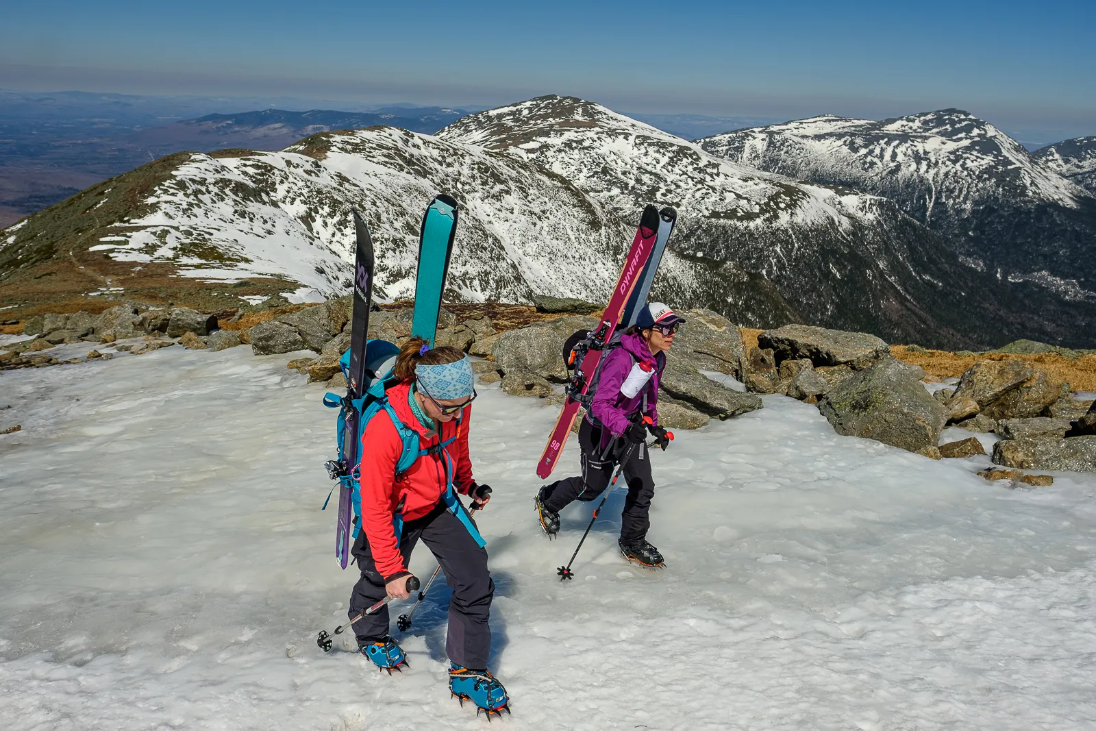 Climbing up Mount Washington (New Hampshire) before skiing down