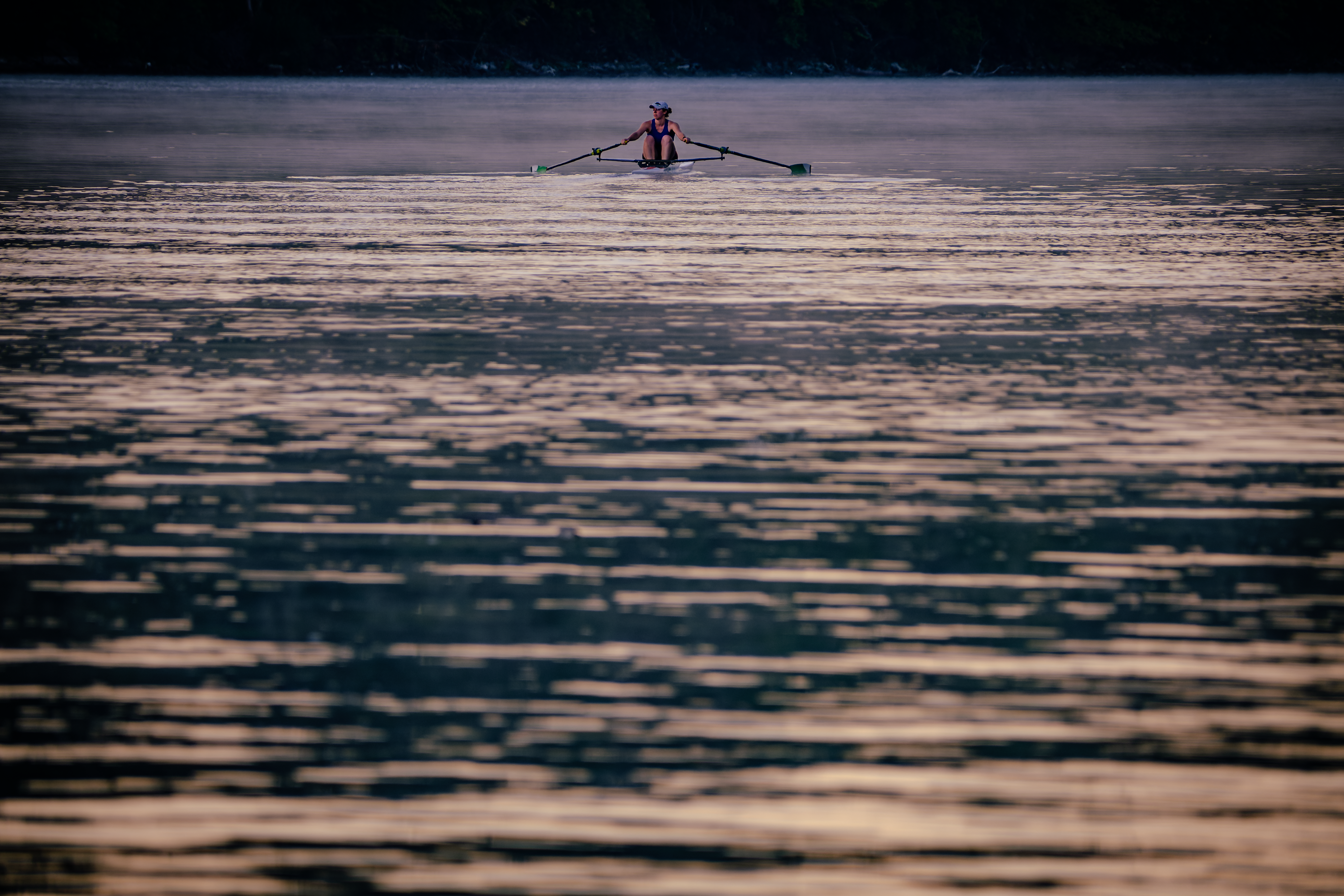 A member of the Minneapolis Rowing Club solos down the Mississippi River in Minneapolis, Minnesota, Aug. 23, 2022.