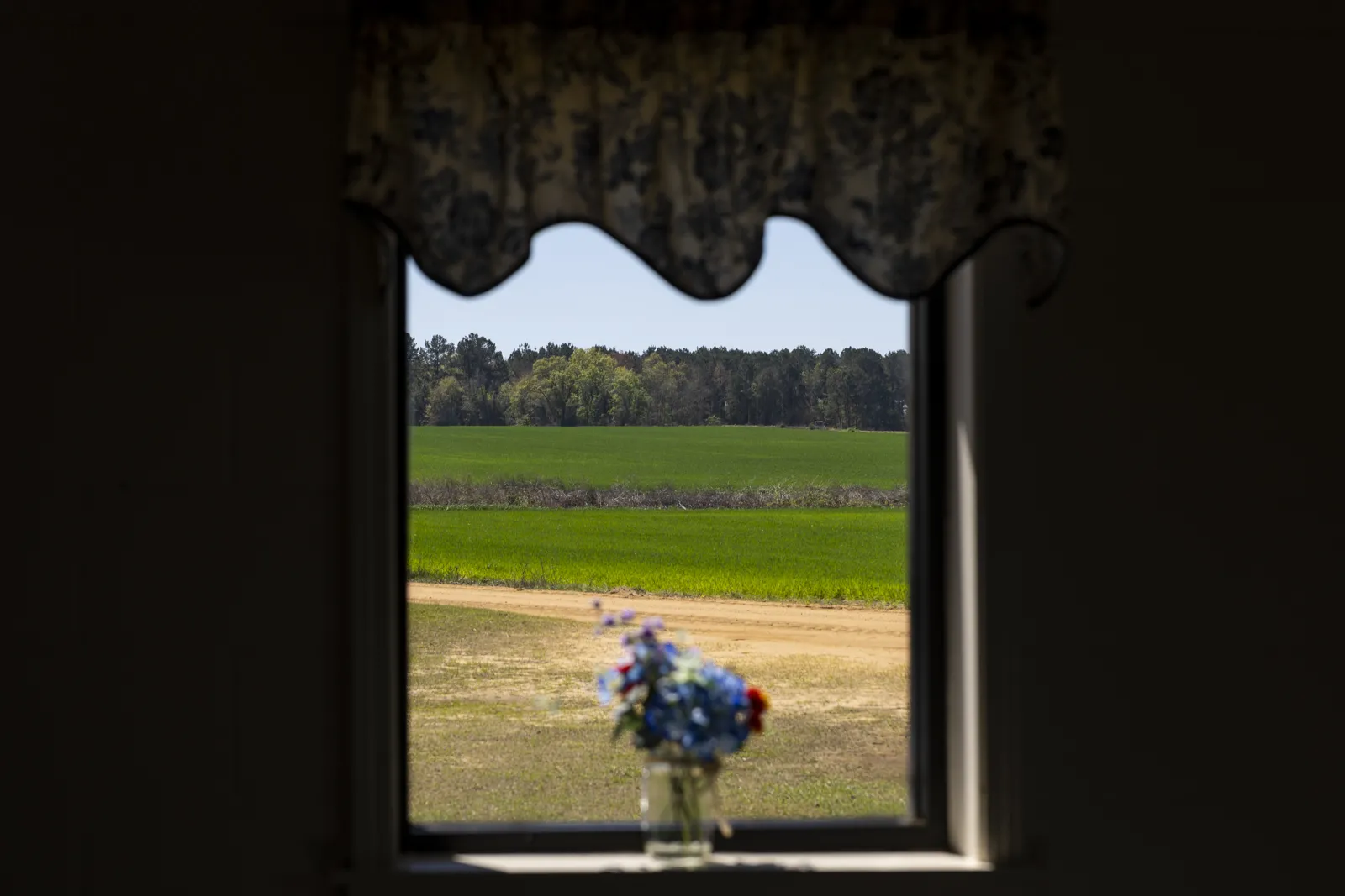 Window view from Sandridge Baptist Church in Hawkinsville, Georgia. Sandridge is a participating church in the telehealth partnership with UGA for health and wellness access in rural Georgia.