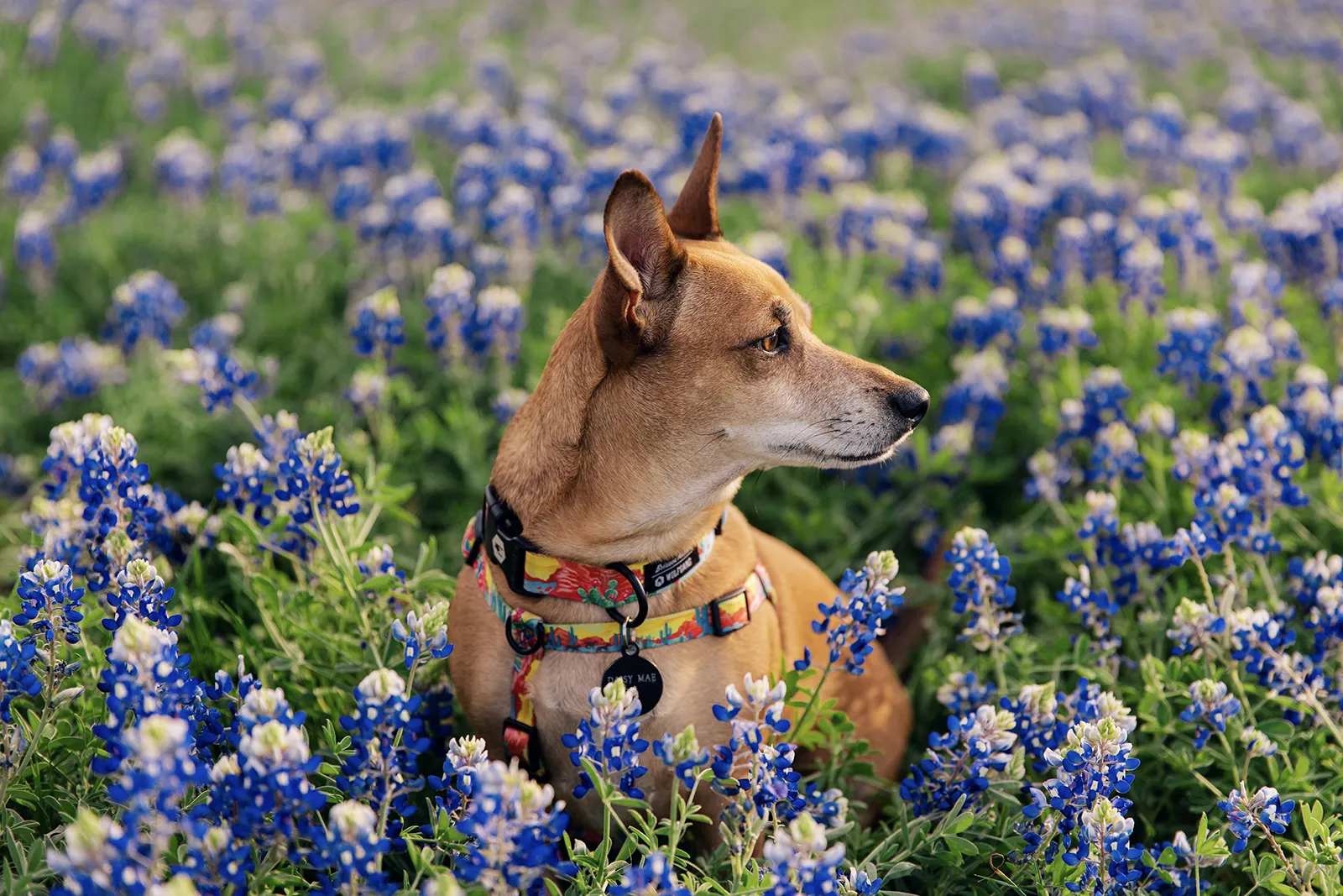 Our campus always has beautiful bluebonnets in the spring, so I knew I wanted to take some photos of my dog Daisy Mae in a field of them! I snapped a few photos of her at golden hour and was sure to pay her for her modeling time with lots of treats.