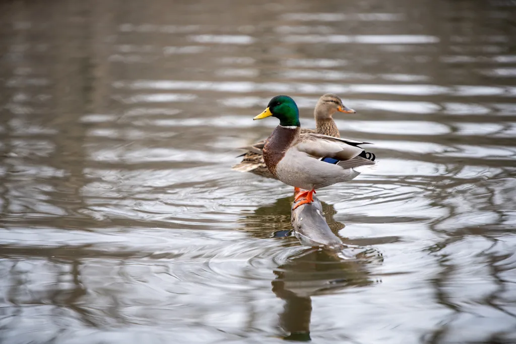 Fun fact, a pair of ducks is called a brace! So a brace of ducks enjoying one of the last few brisk days of March on St. Joseph's Lake on Notre Dame's Campus.