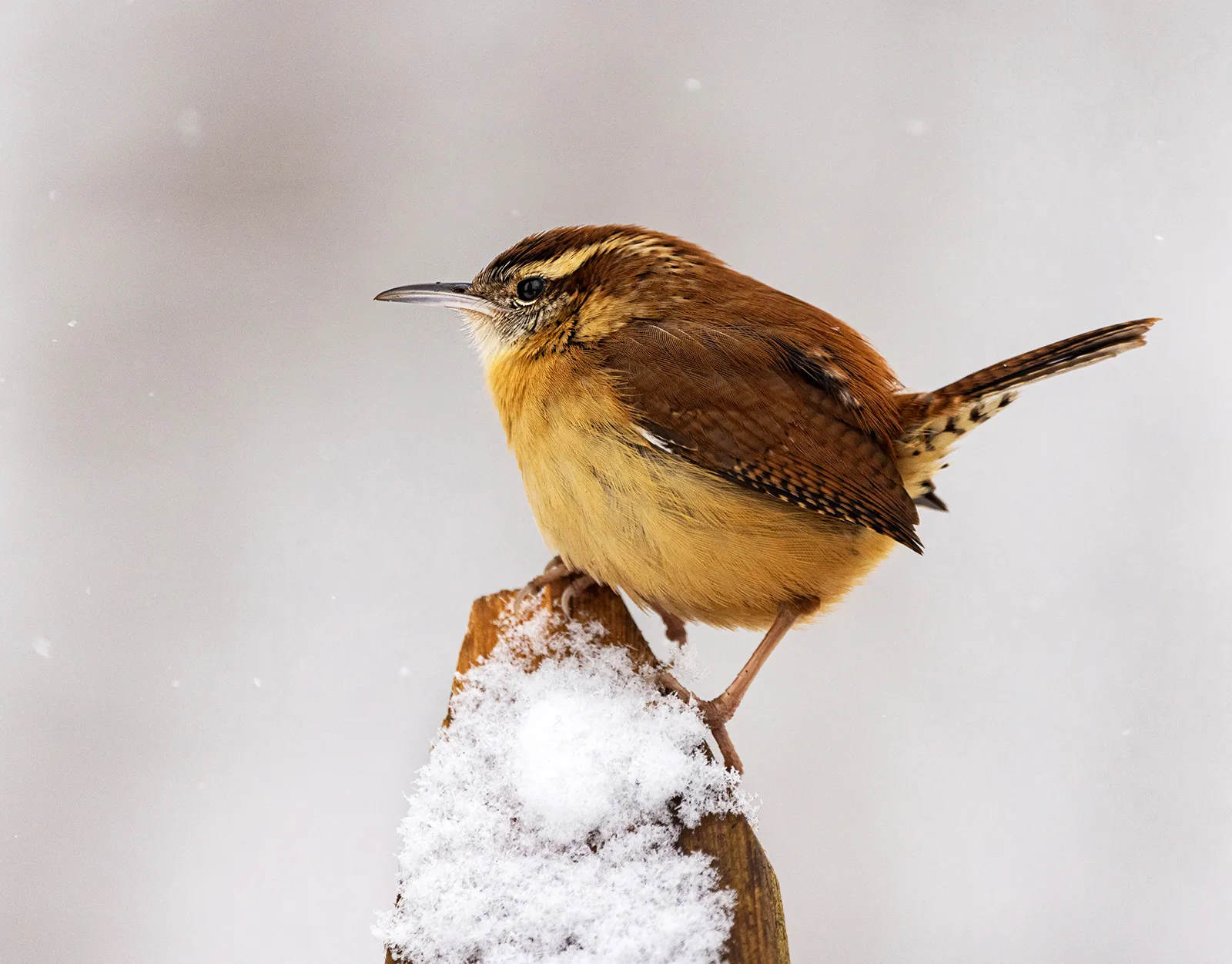 During a recent snow storm, this little Carolina wren was on the hunt for food.