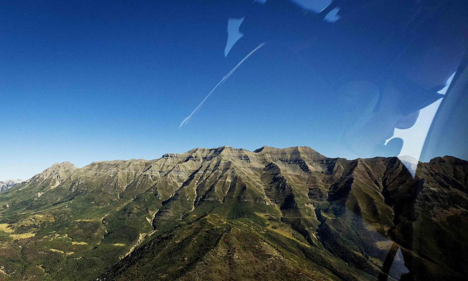A pilot looks out toward Mount Timpanogos while Willy the Wolverine takes a flight over the campus of Utah Valley University and past American Fork Canyon from the Provo Airport in Provo, Utah, on Friday, Sept. 23, 2022.