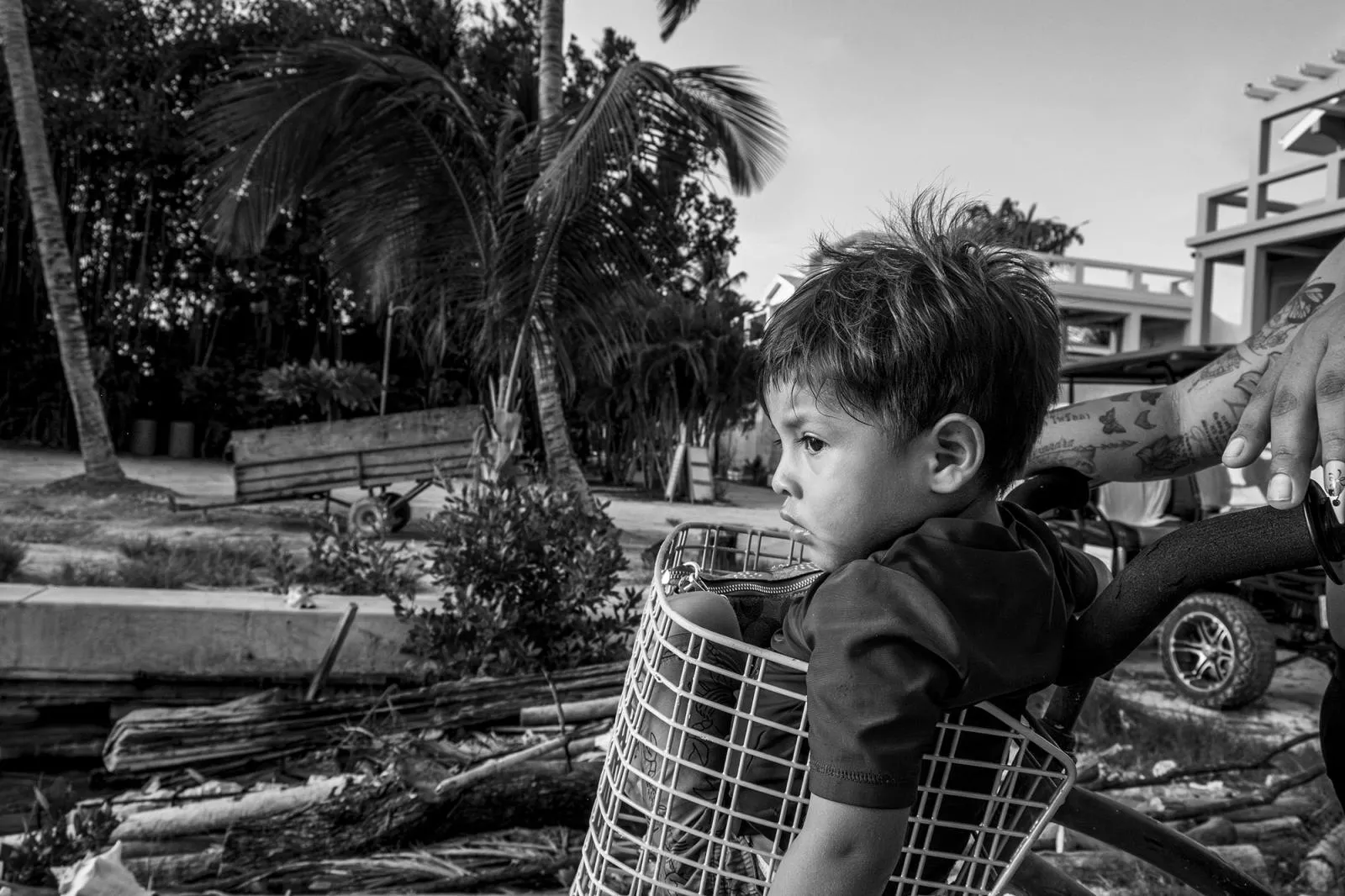 A young boy looks out on the Caribbean Ocean from his Island home off the coast of Belize. Life on the island is due for major changes now that electricity is being run from the mainland.